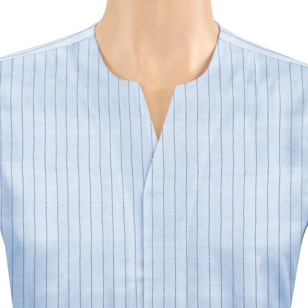 Sky Blue Chalk Stripes Collarless Open V Neck