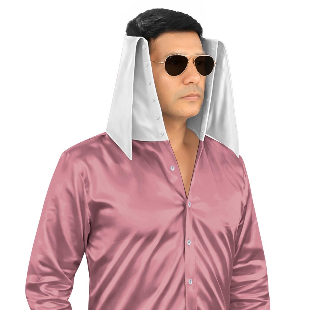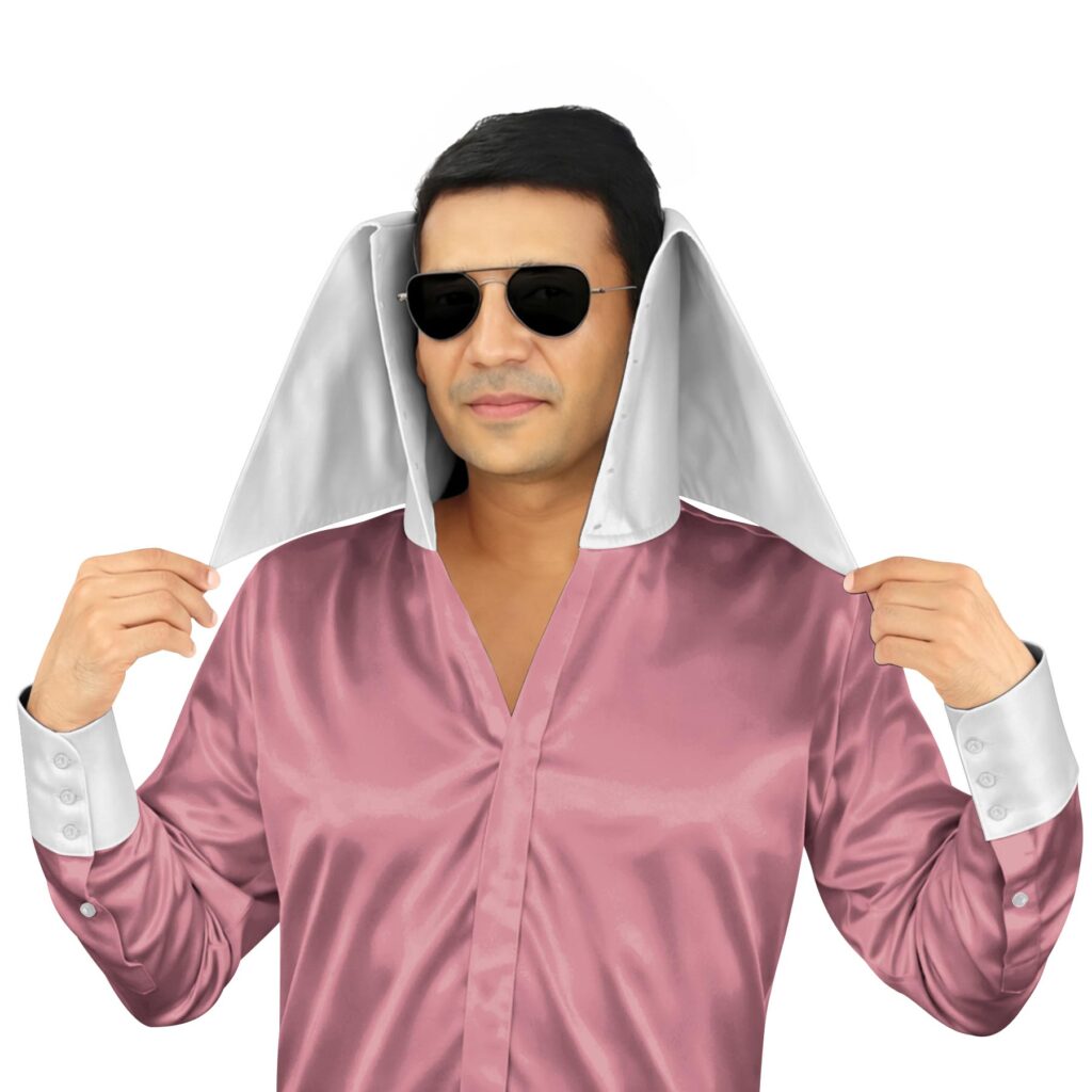 Dusky Rose Silky Satin High Long 2 Button Collar