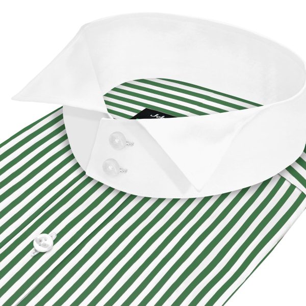 Sea Green Stitch Pinstripes High Wing 2 Button Collar