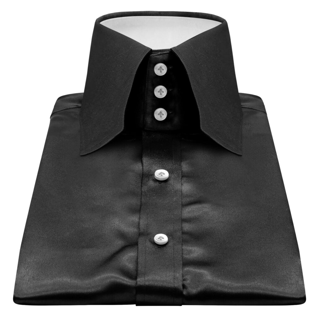 Black Silky Satin High Chisel Collar Rainbow Buttons