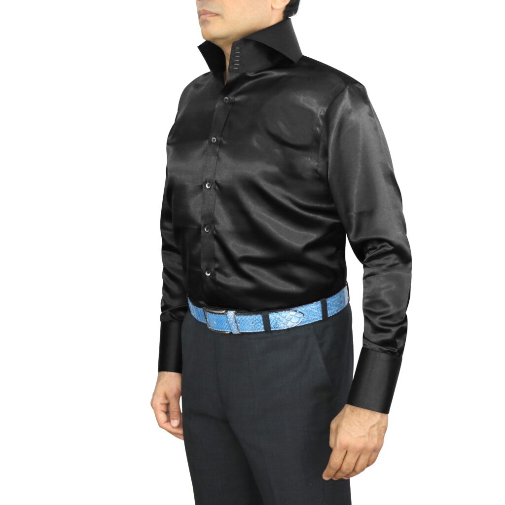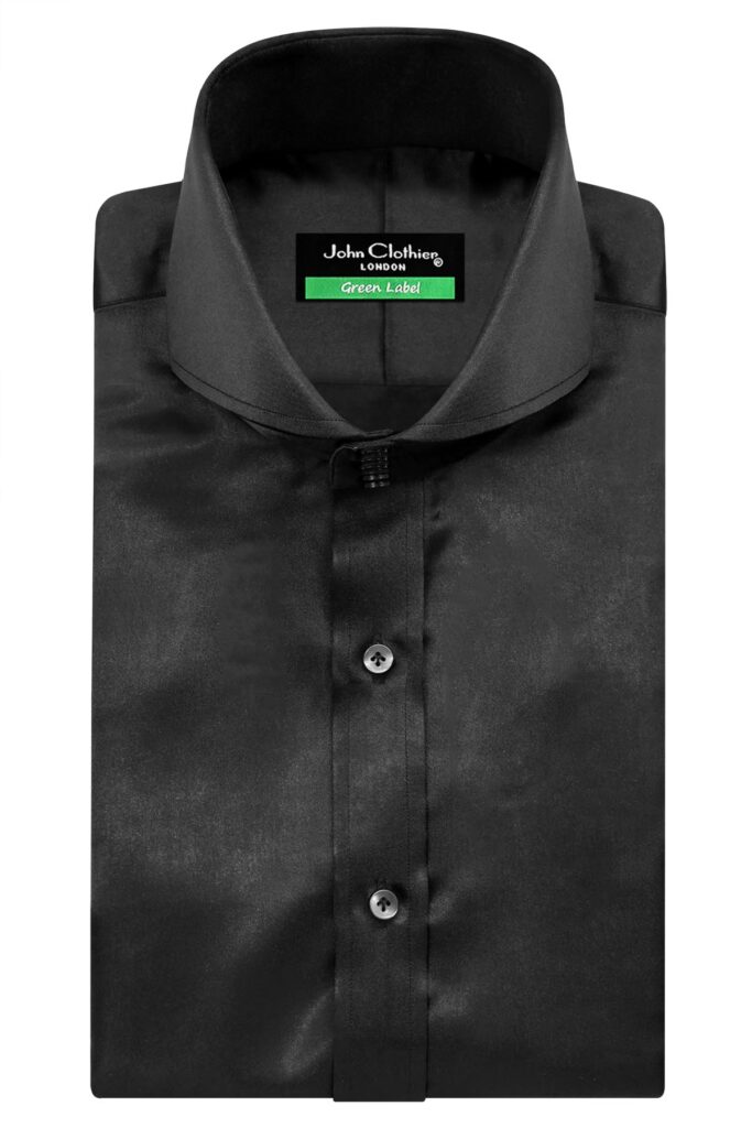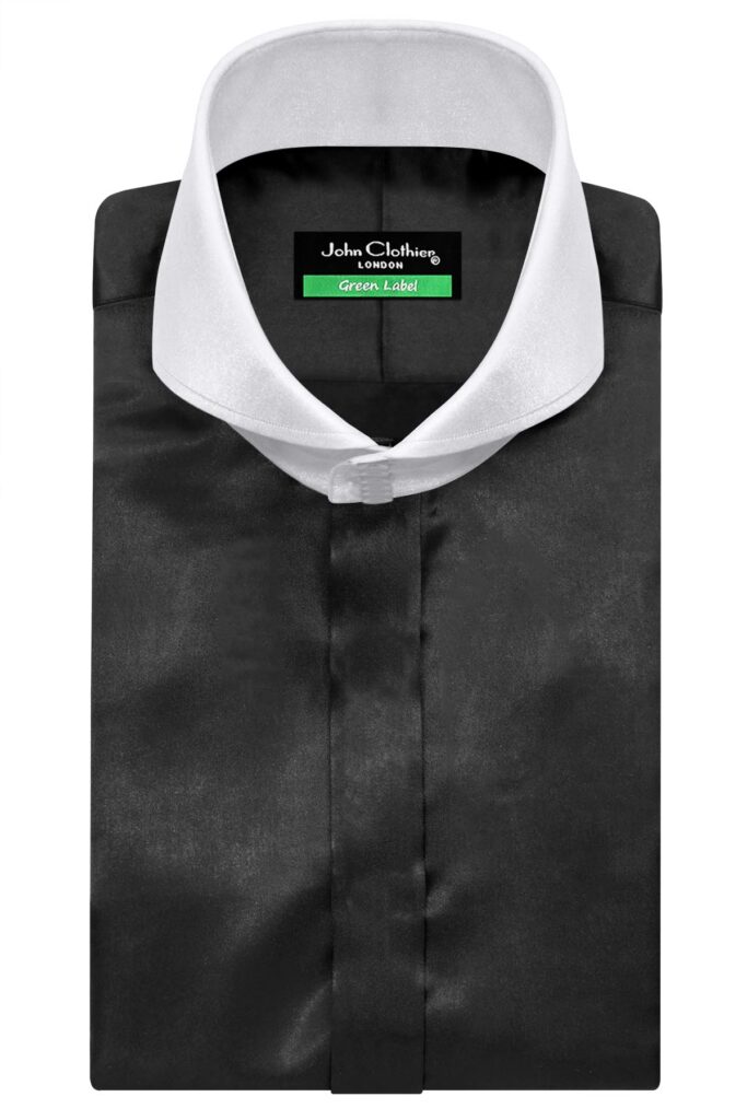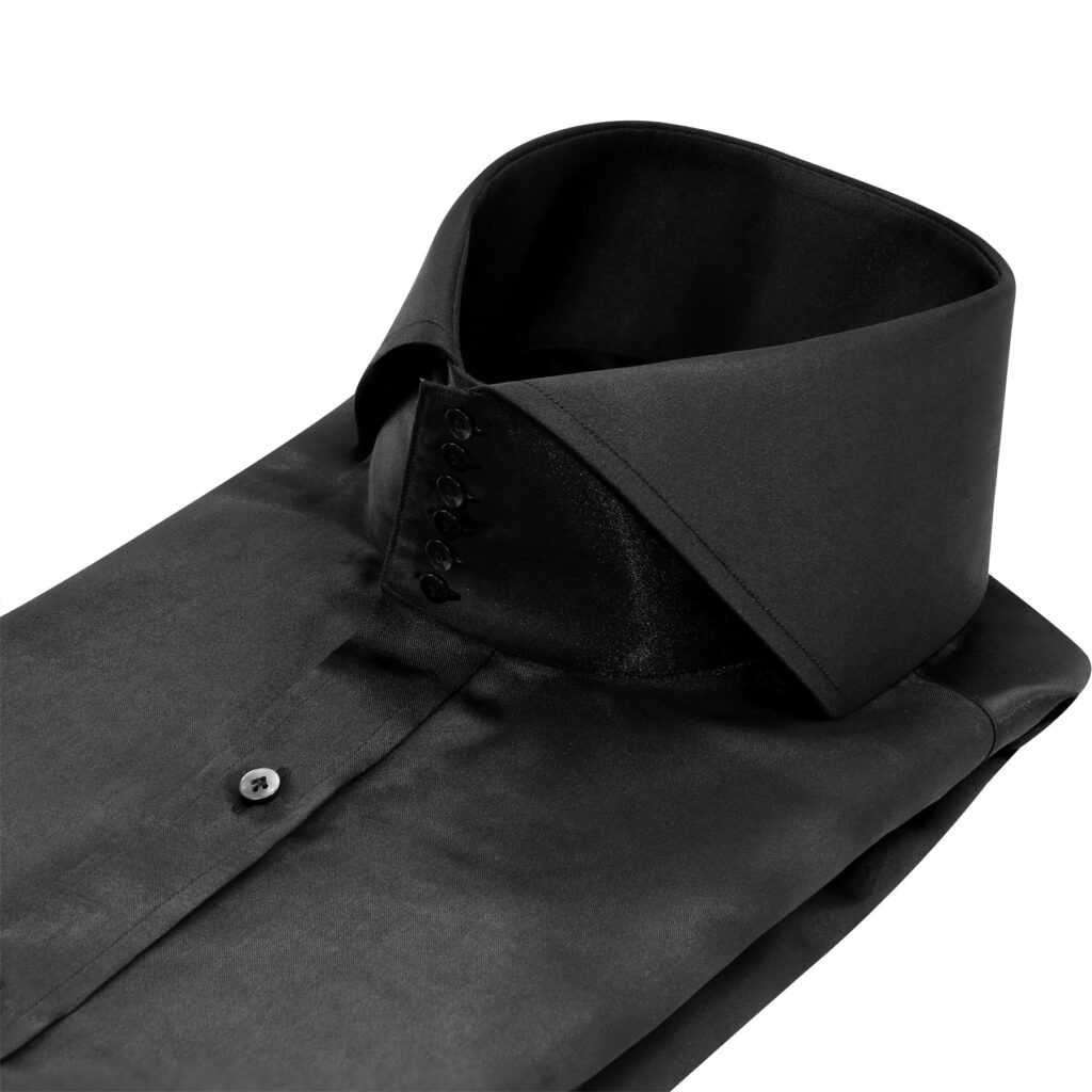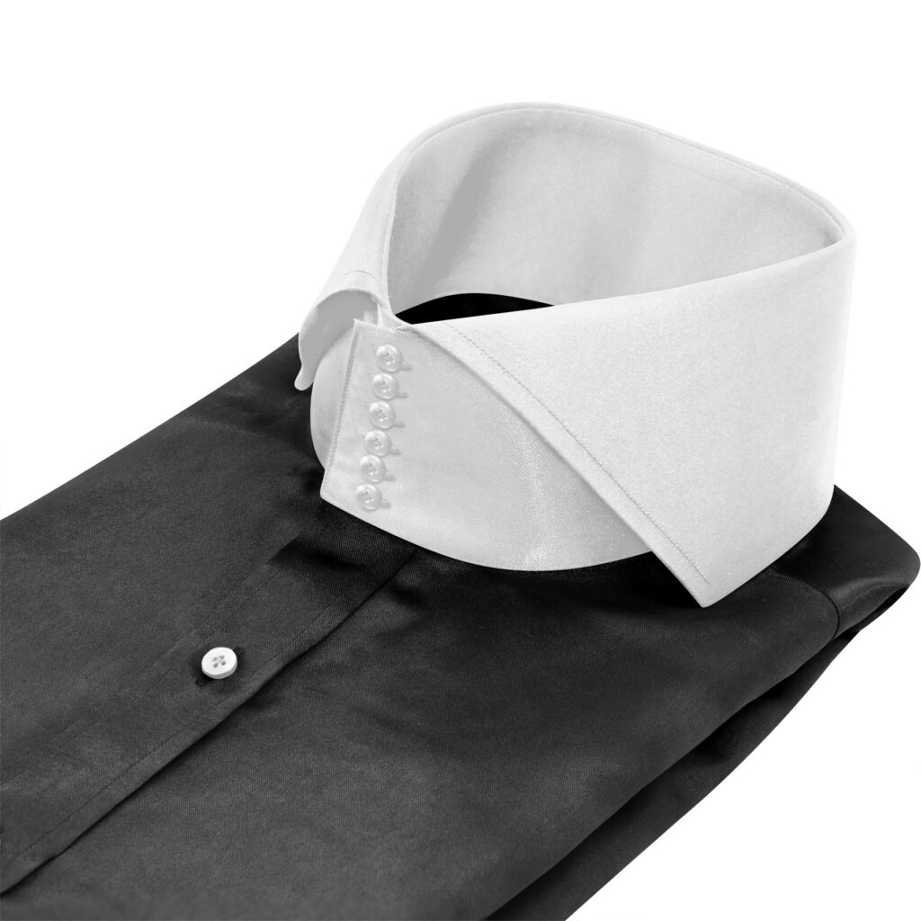 Black Silky Satin High Cutaway 6 White Button Collar