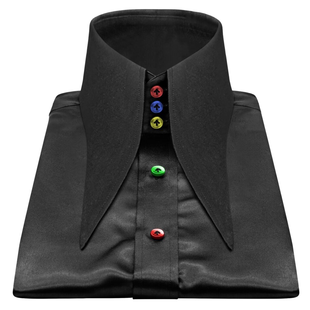 Black Silky Satin High Extreme Longpoint Collar White Buttons