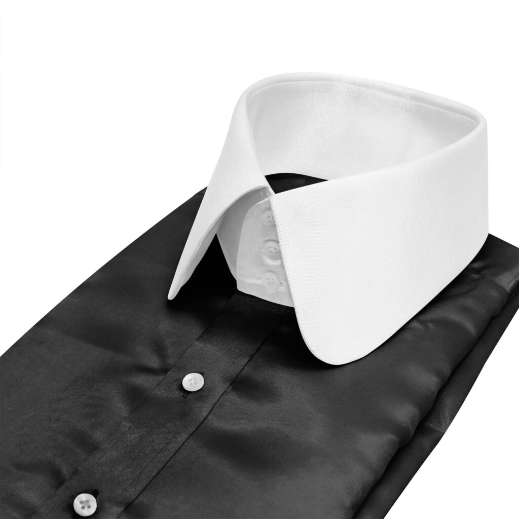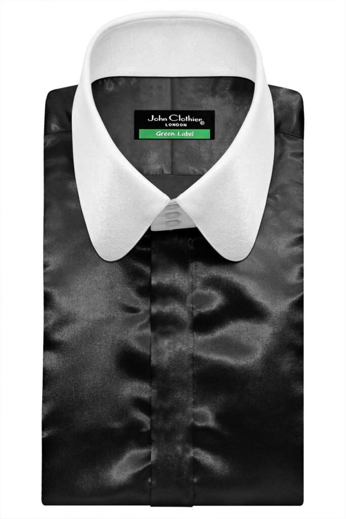 Black Silky Satin High Penny 3 White Button Collar Black Silky Satin High Penny 3 White Button Collar Price range: £120.00 through £160.00