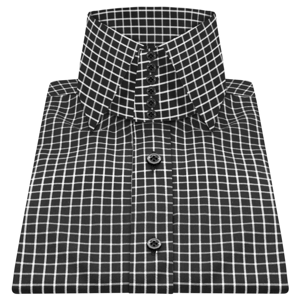 Black & White Small Checks High Spread 4 Button Collar