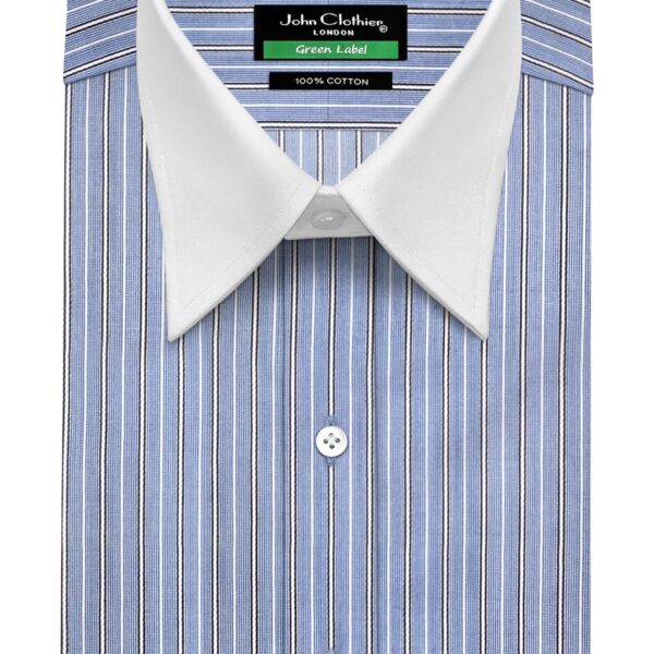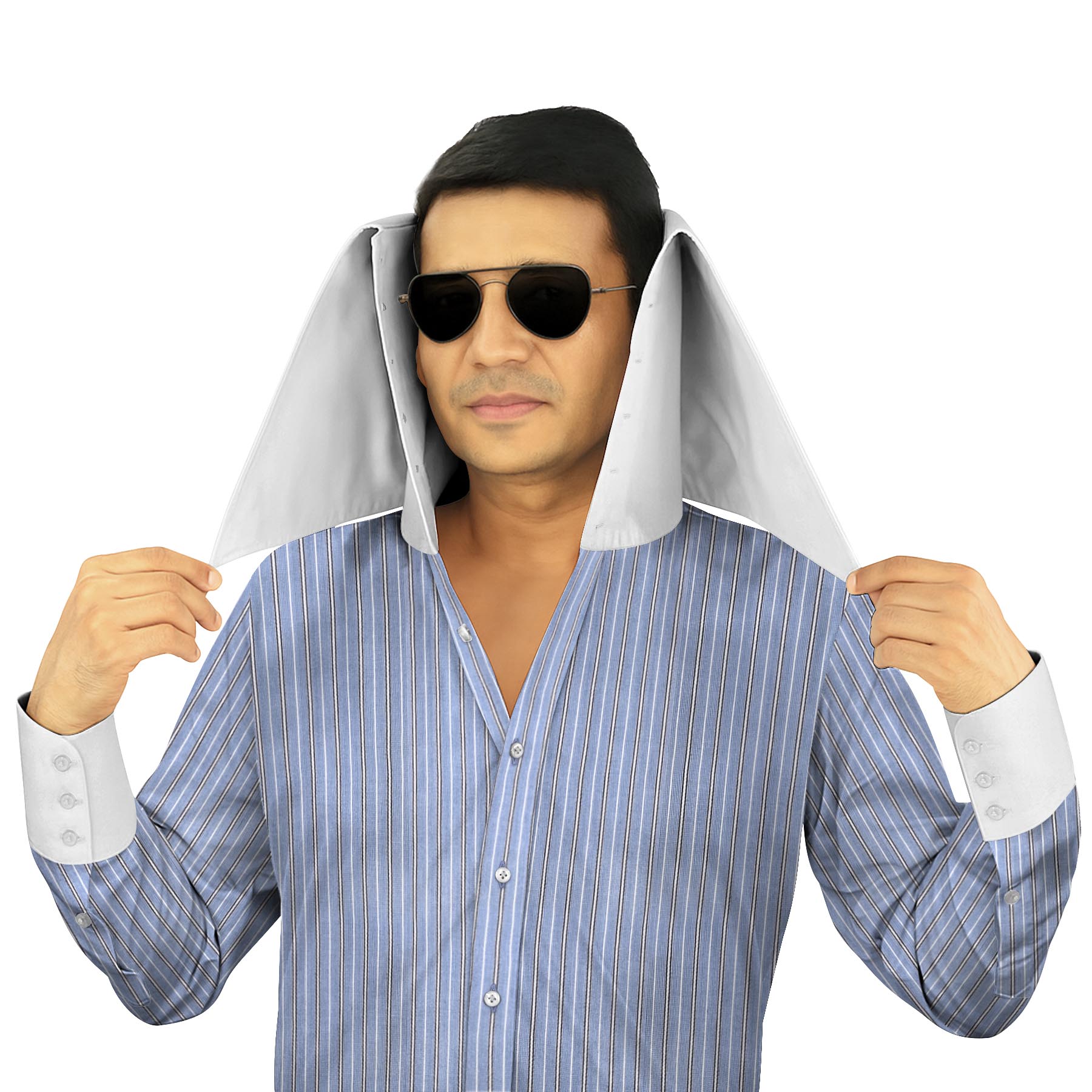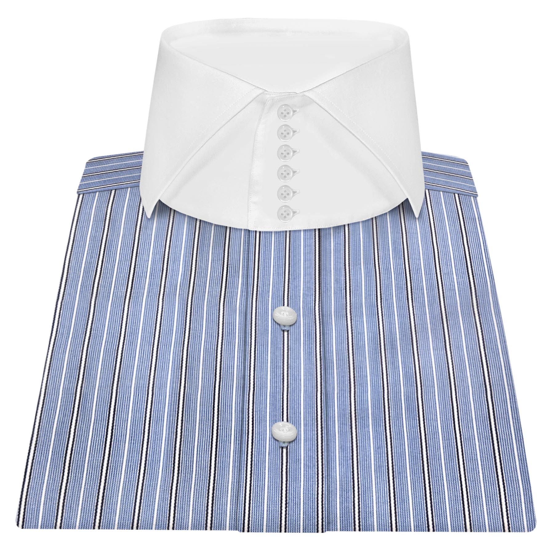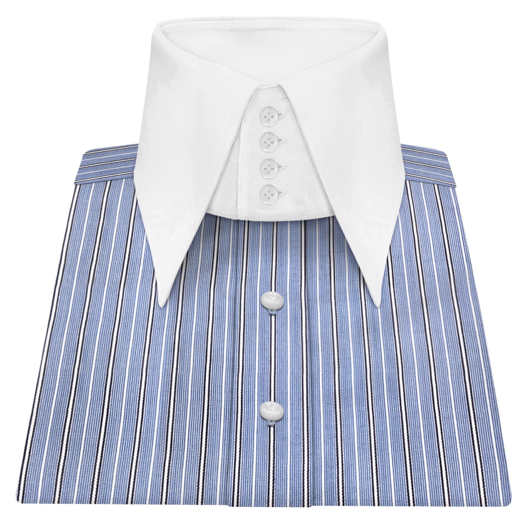 White Linen Blue Stripes High Extreme Longpoint Collar