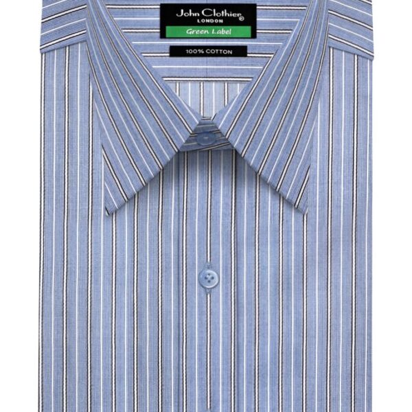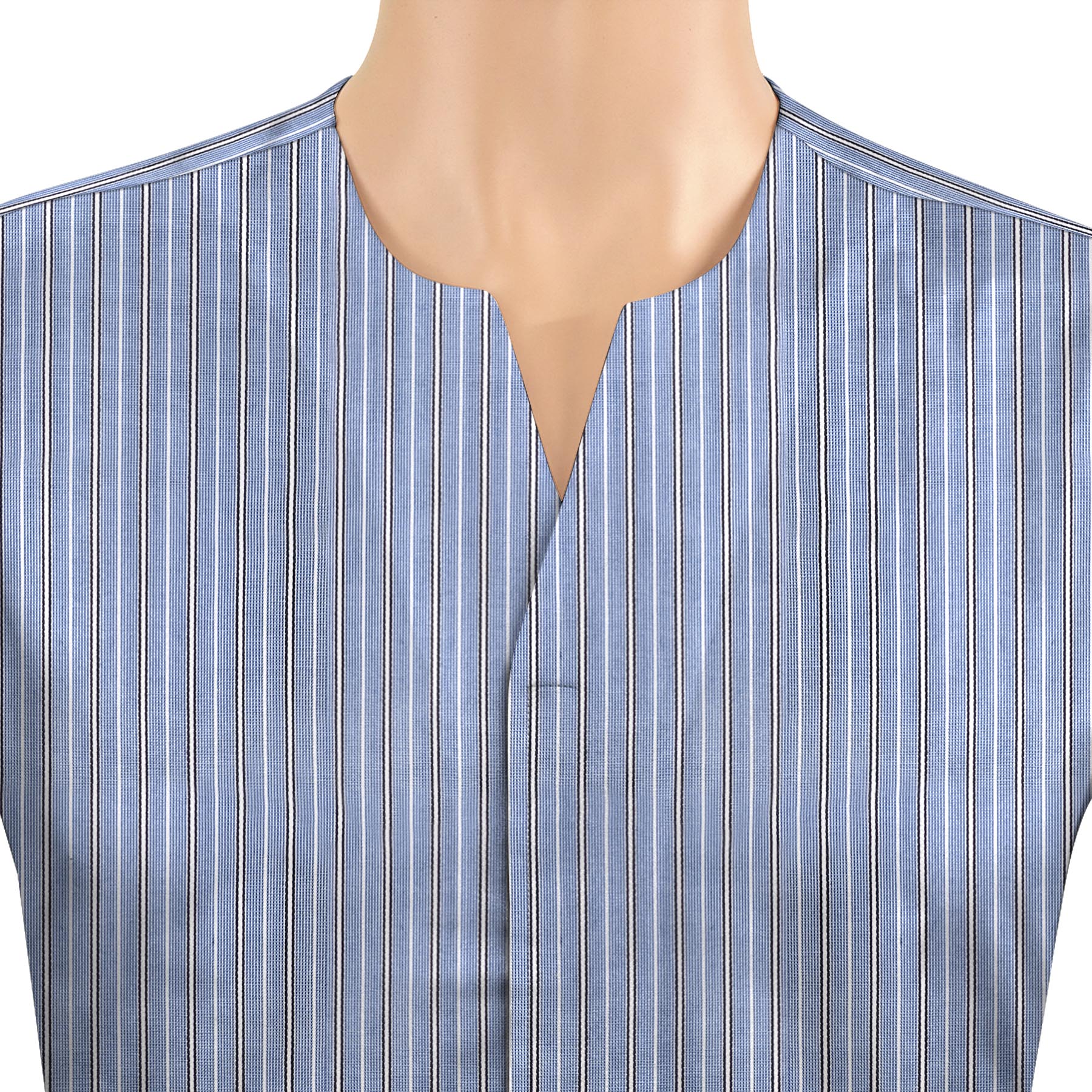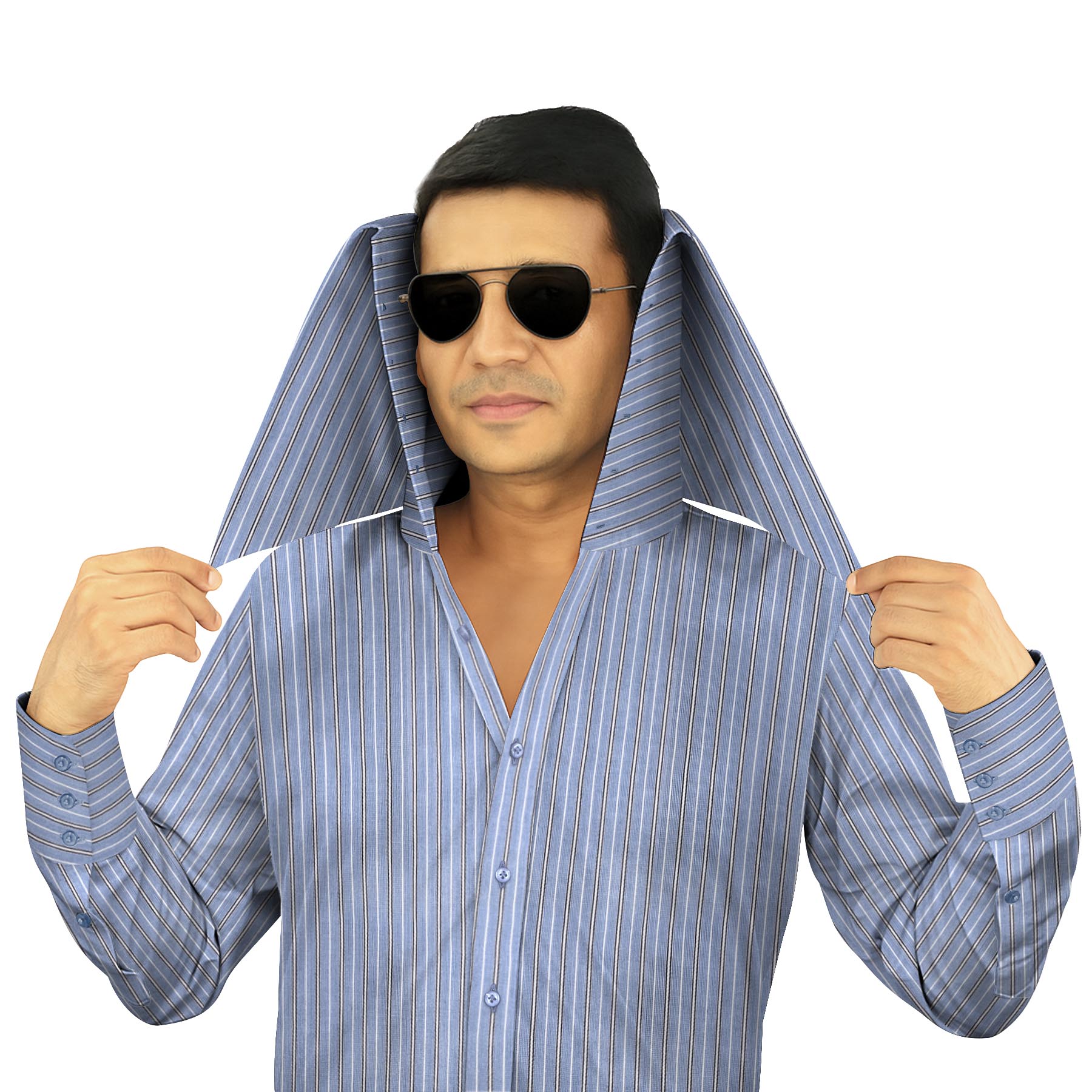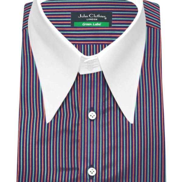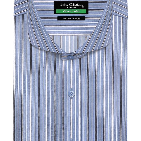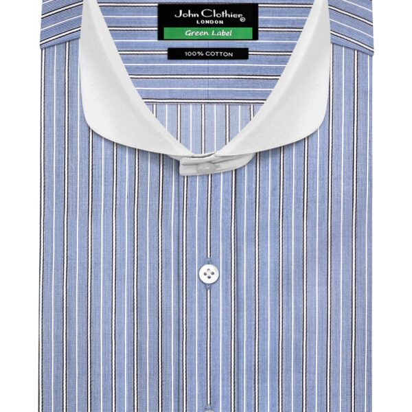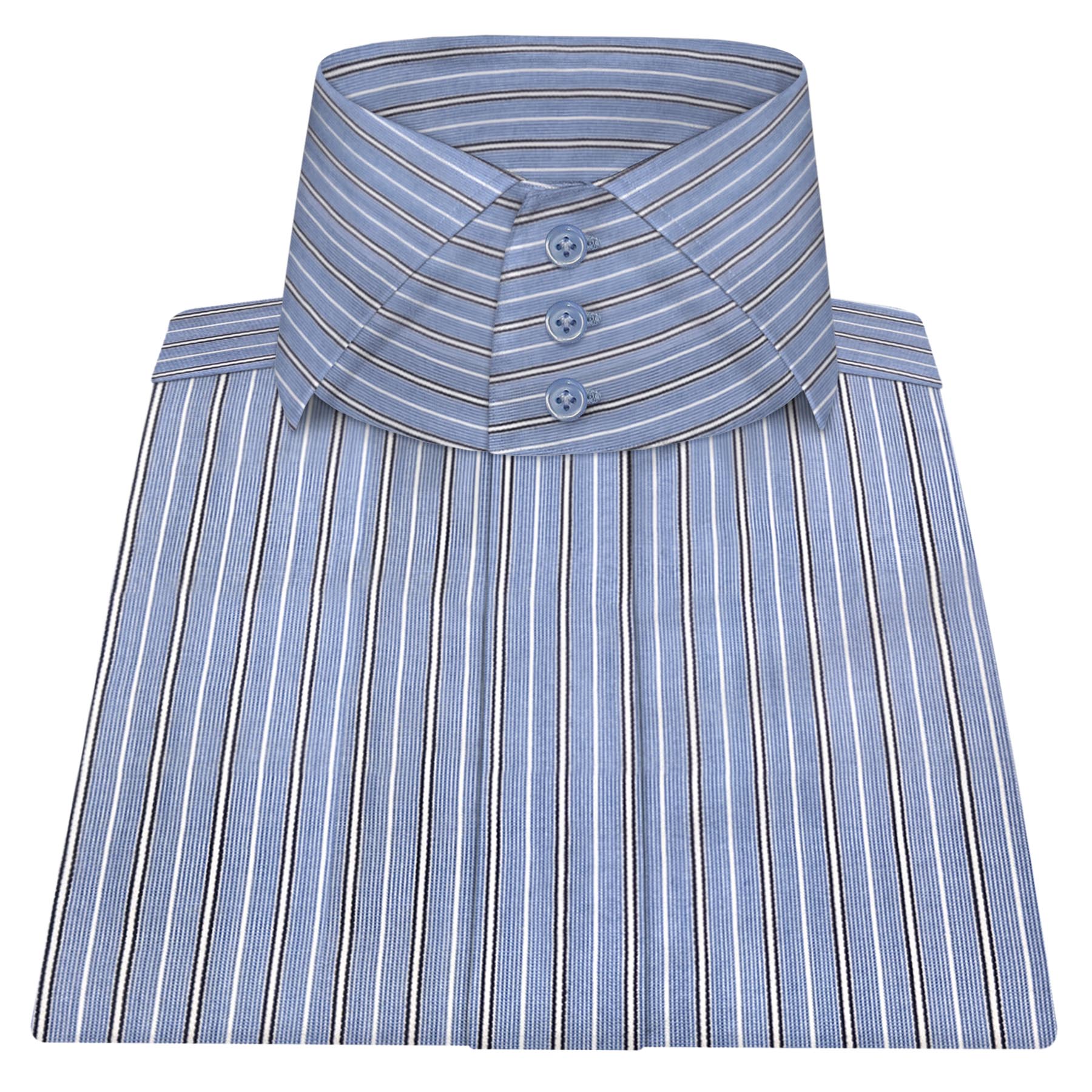 White Linen Blue Stripes High Extreme Longpoint Collar