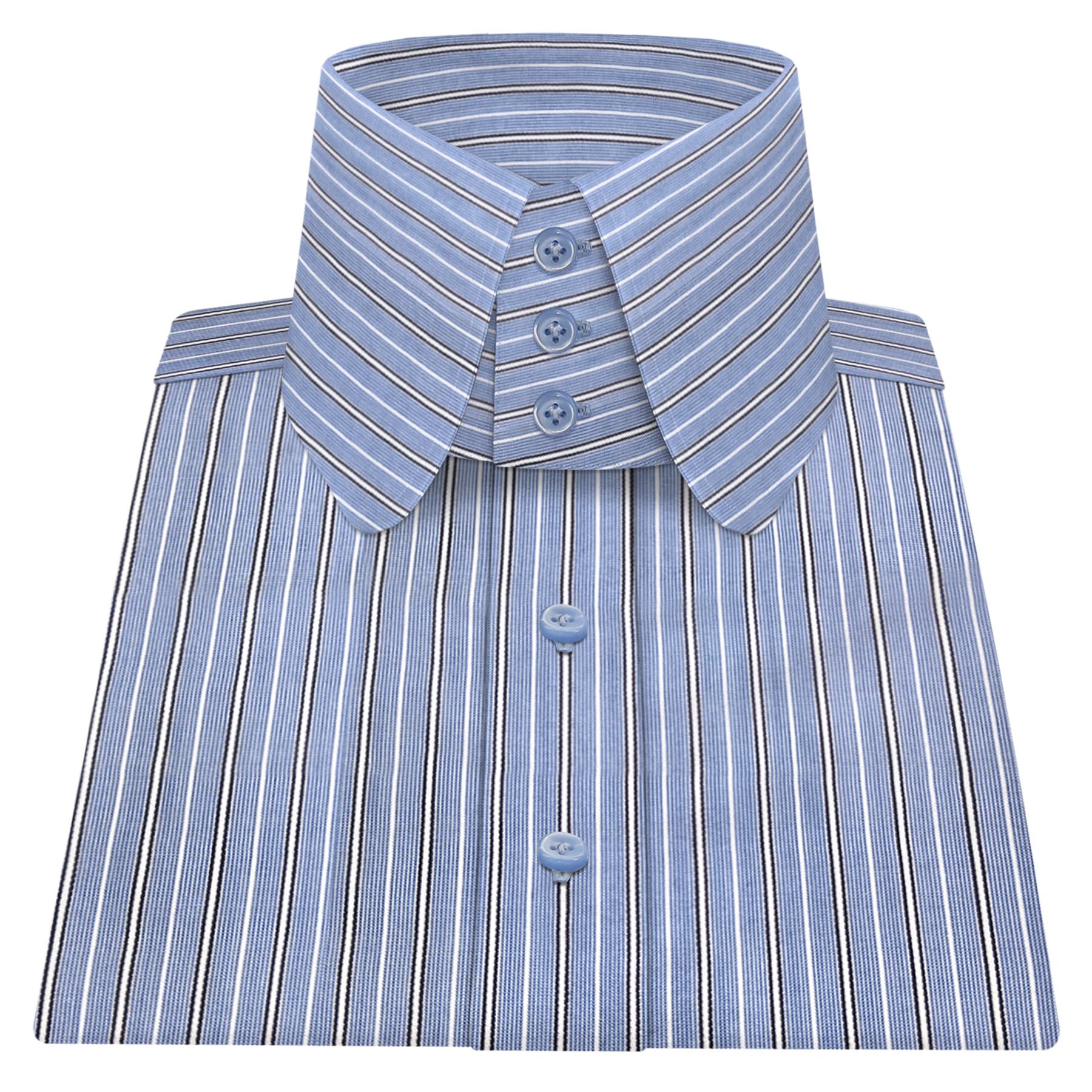Blue Grey Pinstripes High Long Point 4 Button Collar