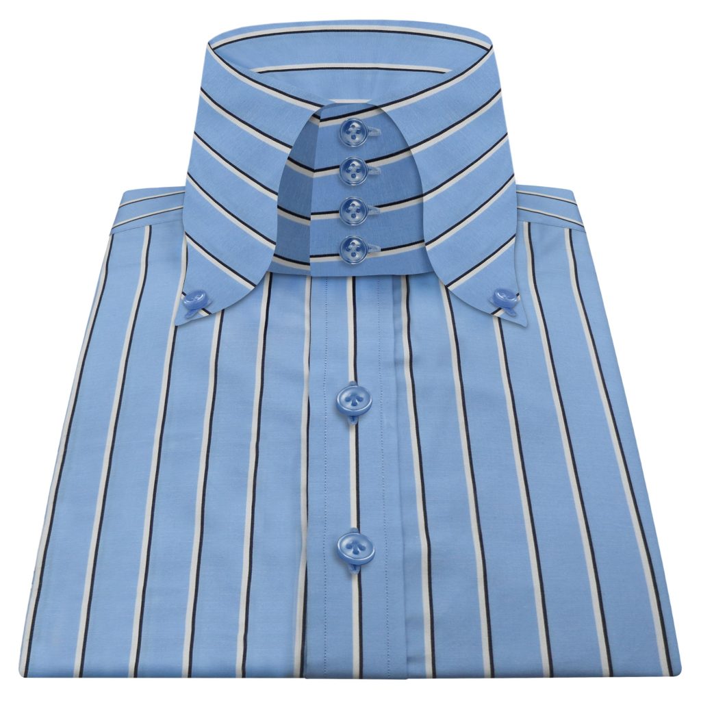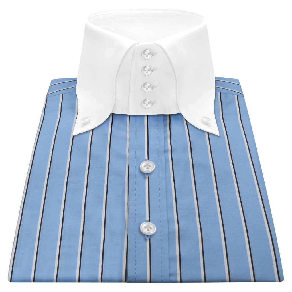 Blue with Black & White Stripes High Cutaway 2 Button Collar