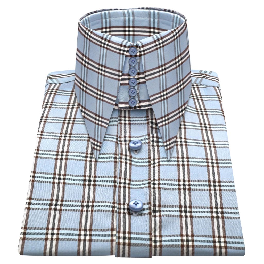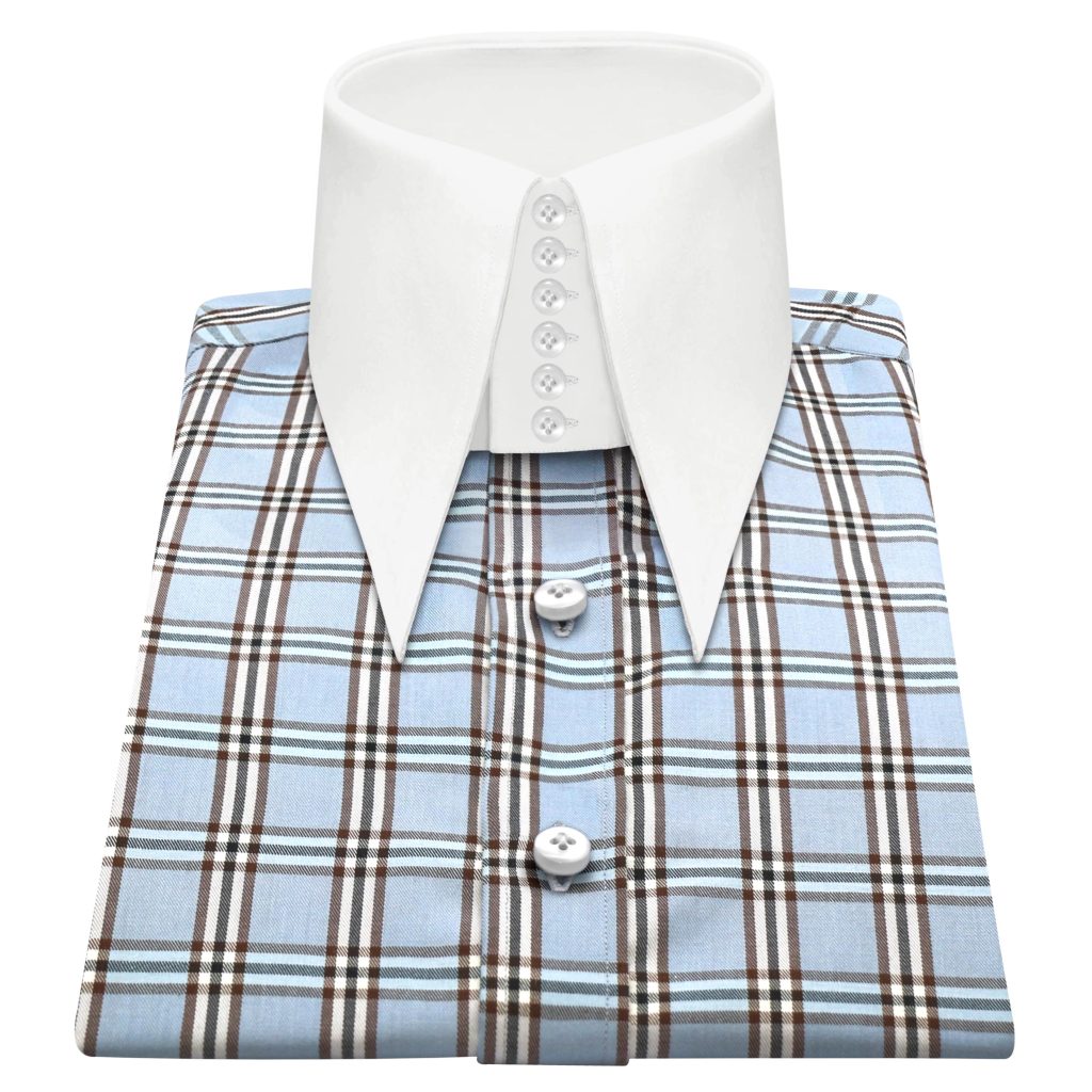 Blue White Thin Stripes High Long Point 6 Button Collar