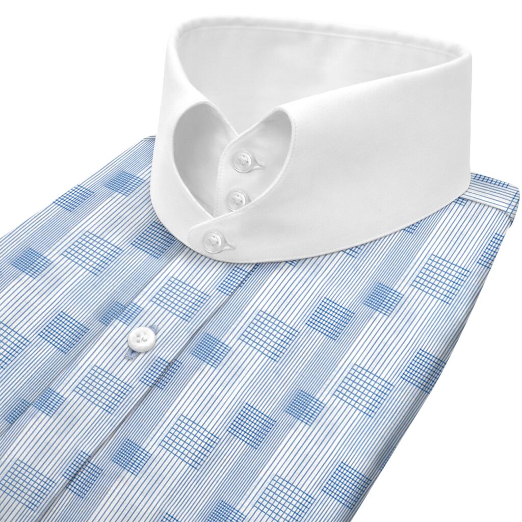 Blue Check Stripes High Heart Shape 2 Button Tab Collar