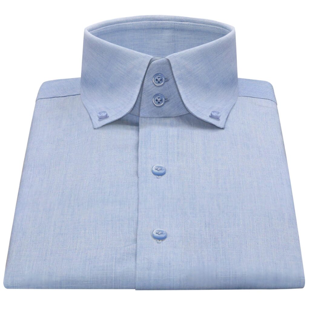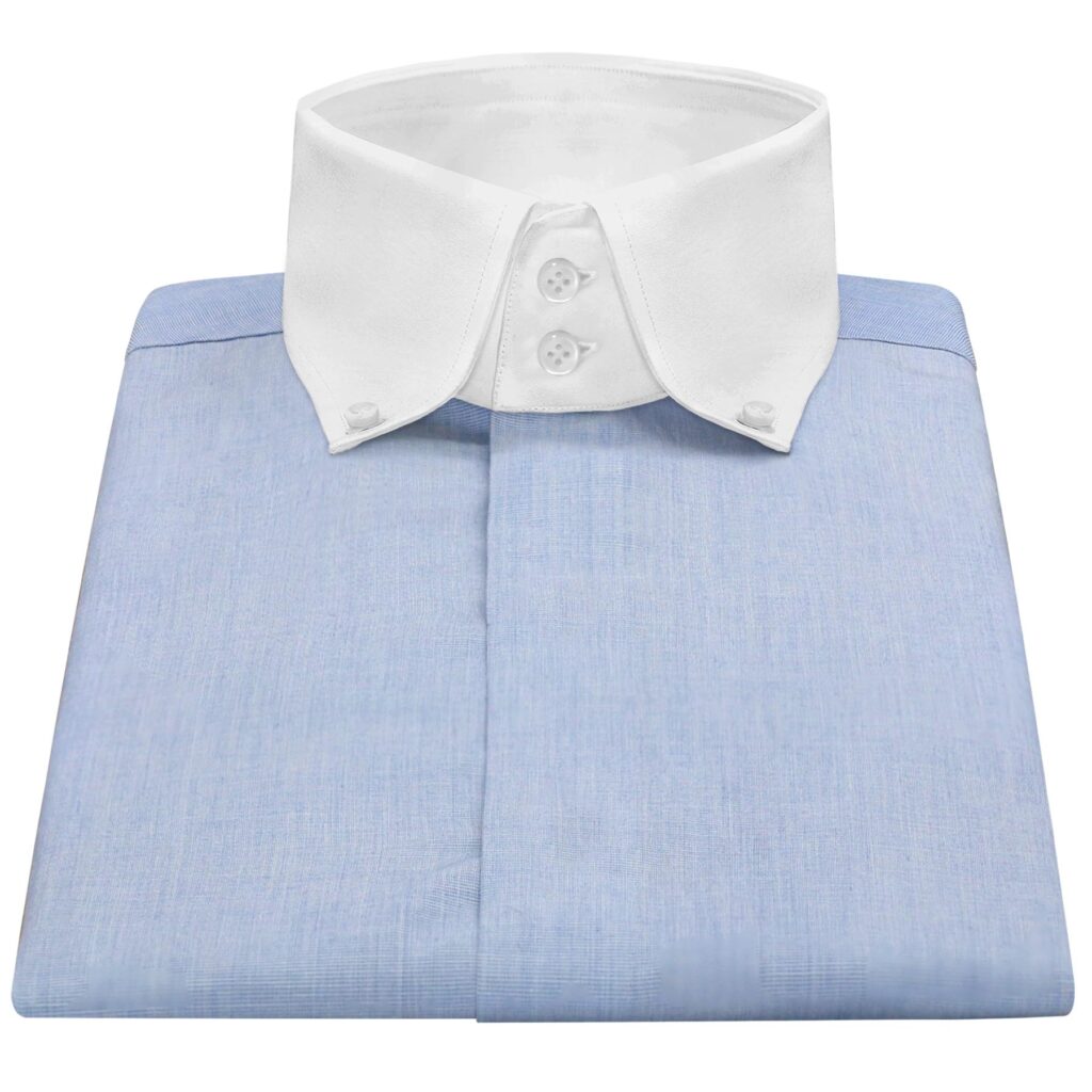 Sky Blue Self Stripes High Button Down 2 Button Collar