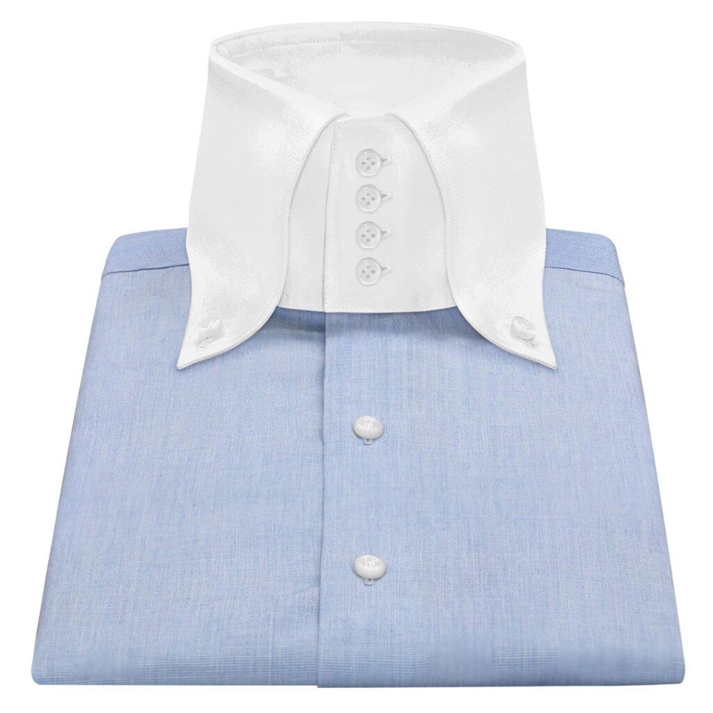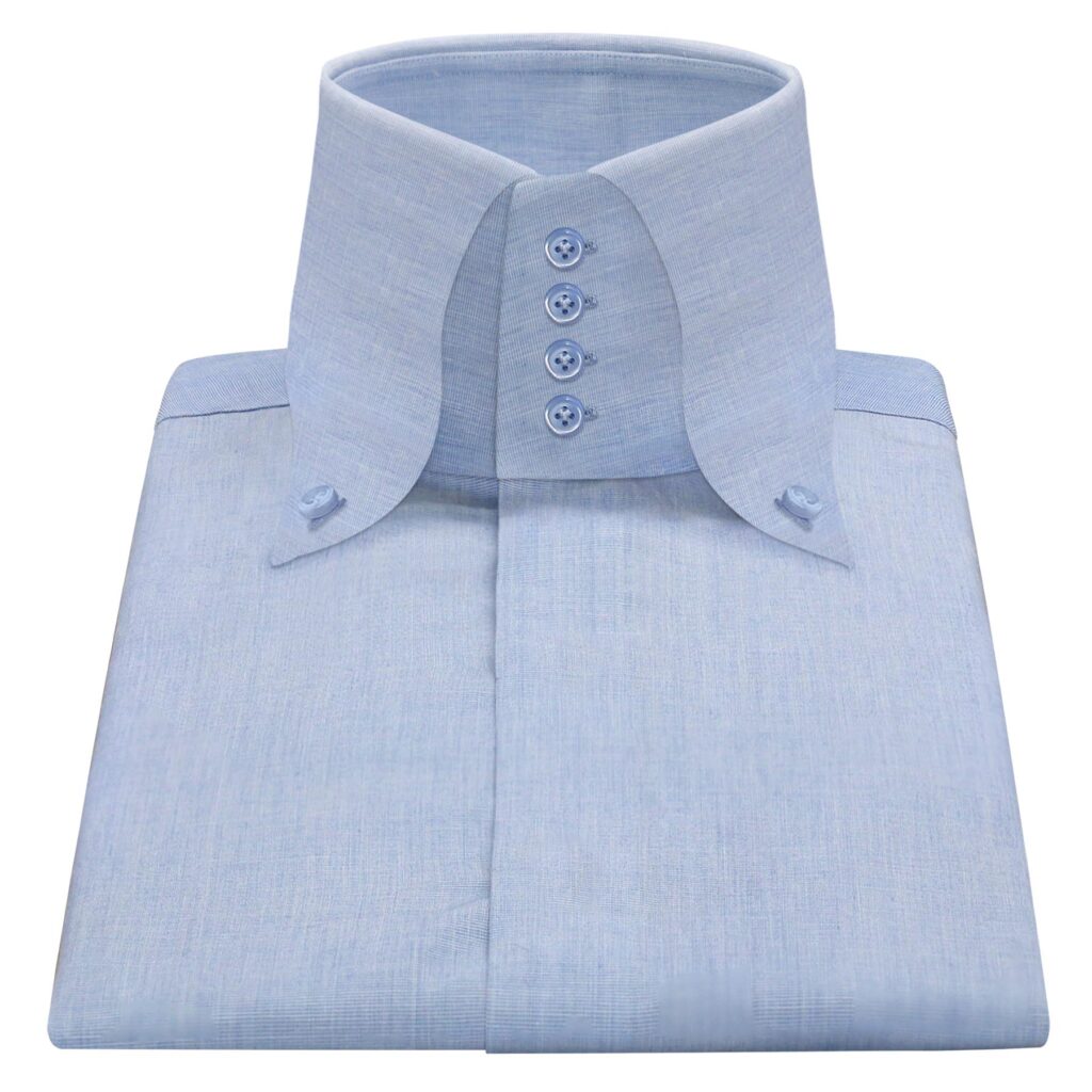 Sky Blue Self Stripes High Button Down 4 Button Collar