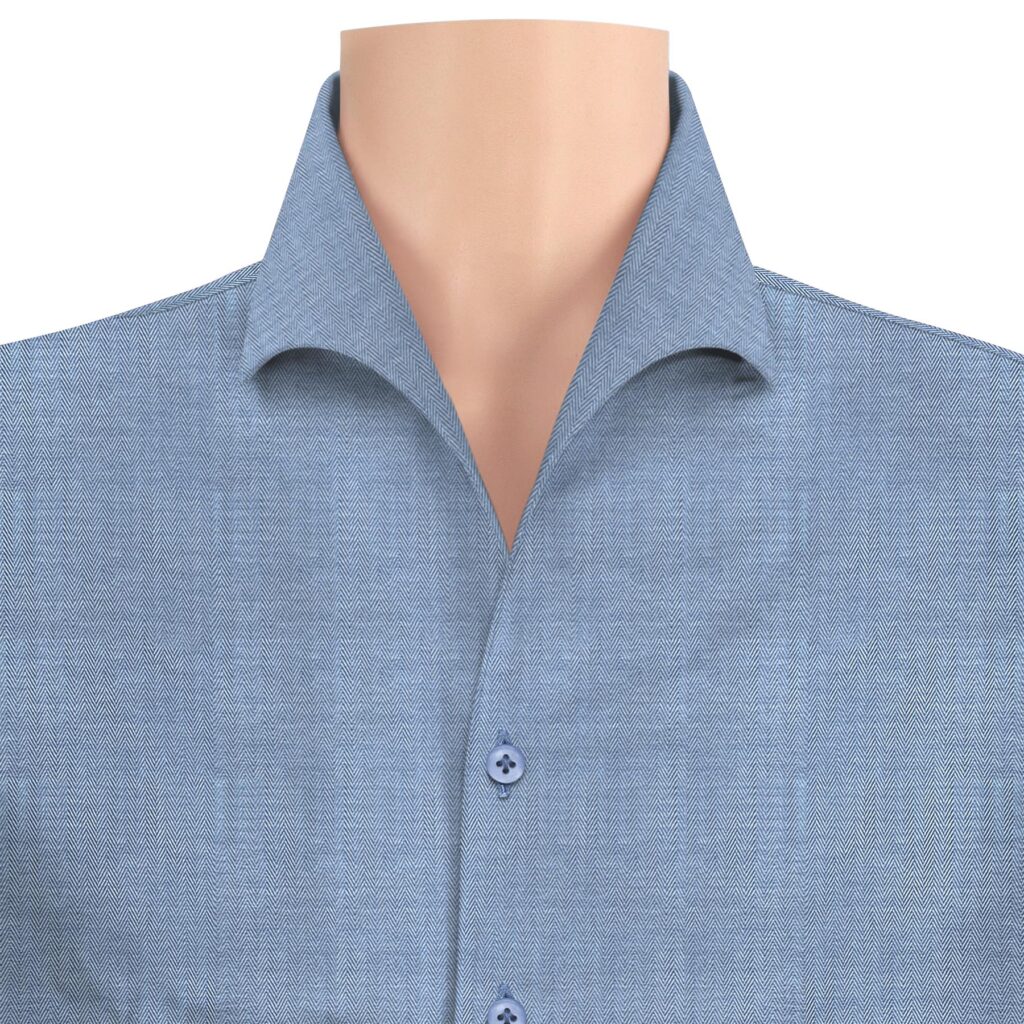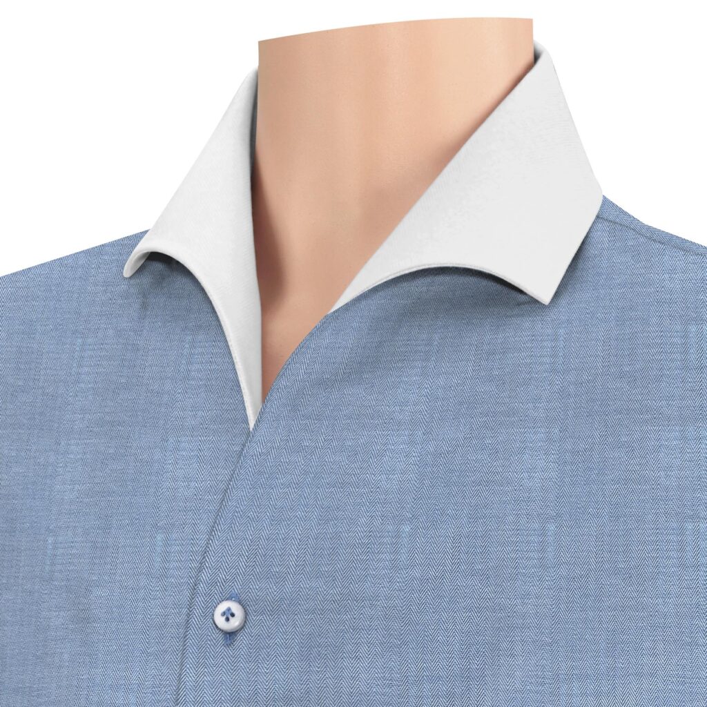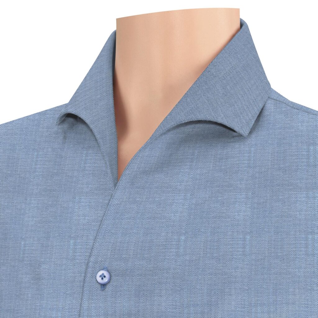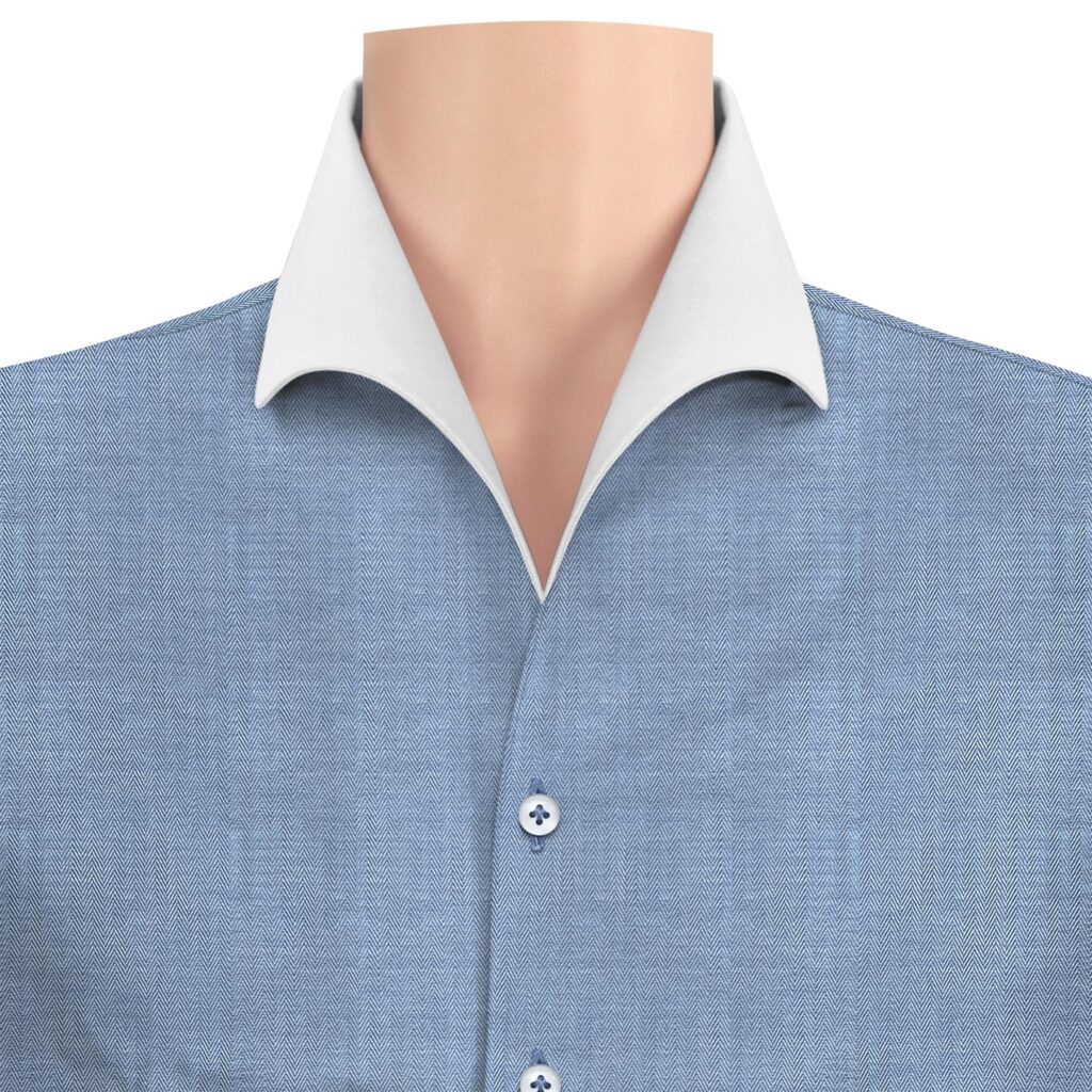 Blue Tiny Herringbone High Spread 2 Button Collar