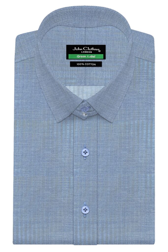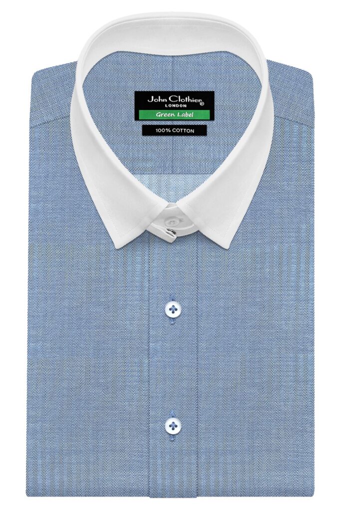 Blue Fine Herringbone Tab Collar
