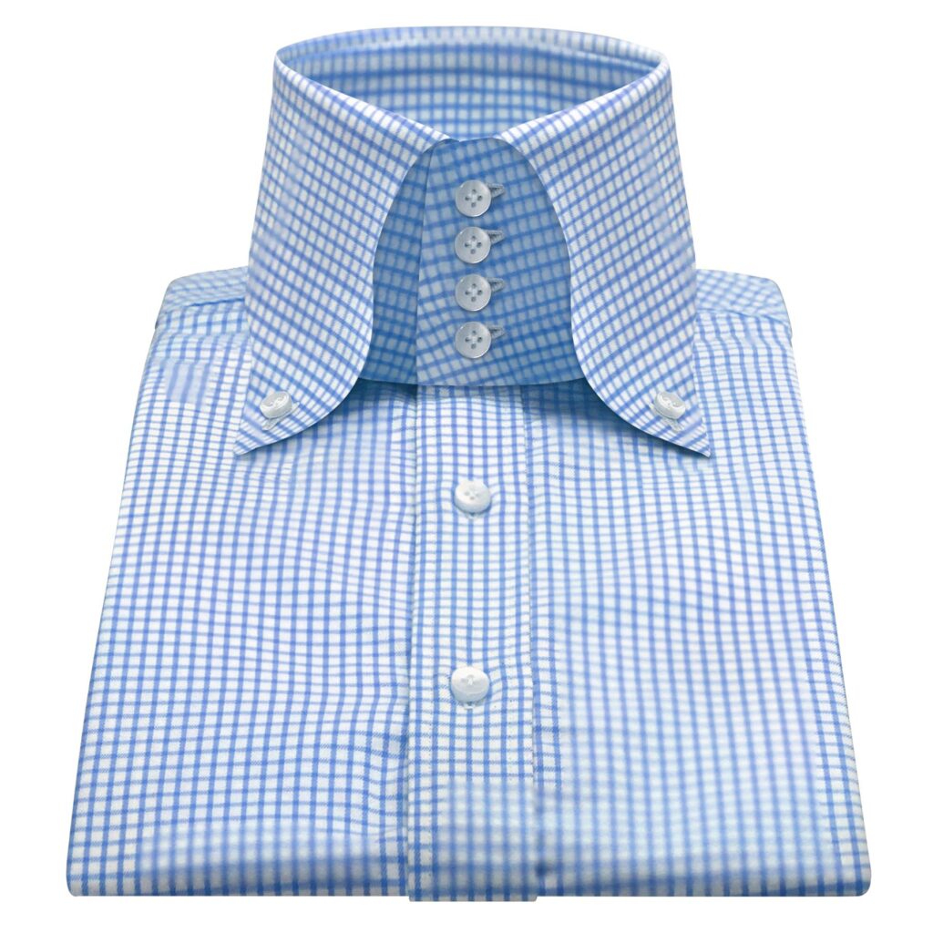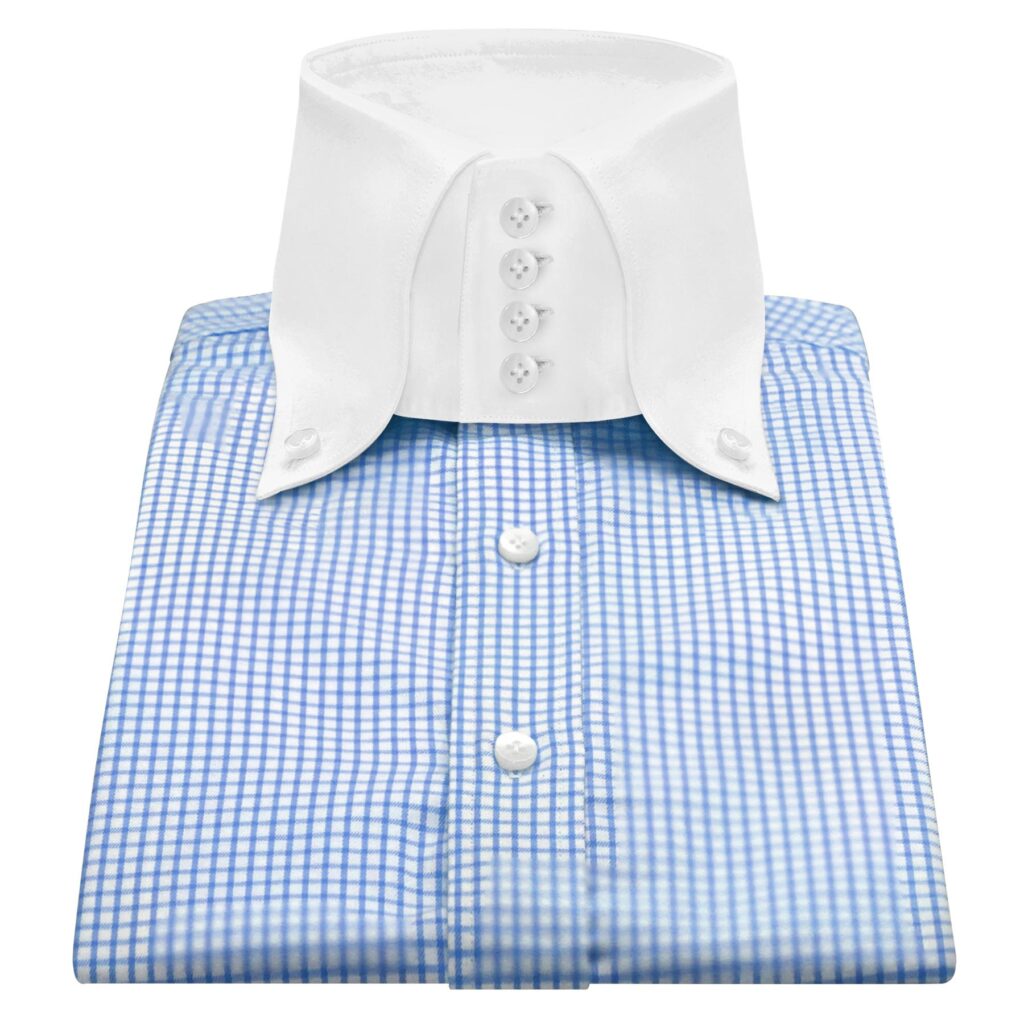 Yellow Gingham Checks High Button Down 4 Button Collar