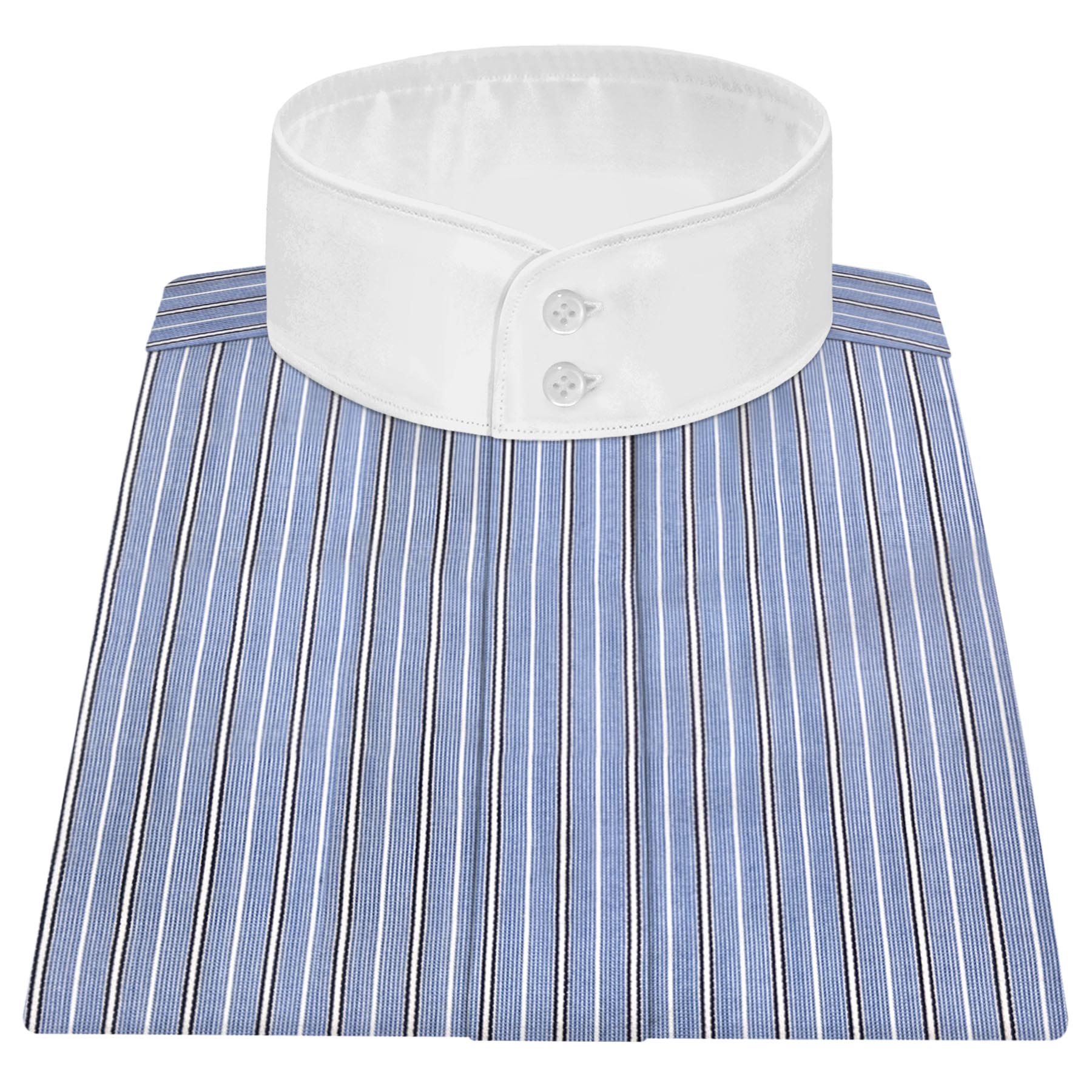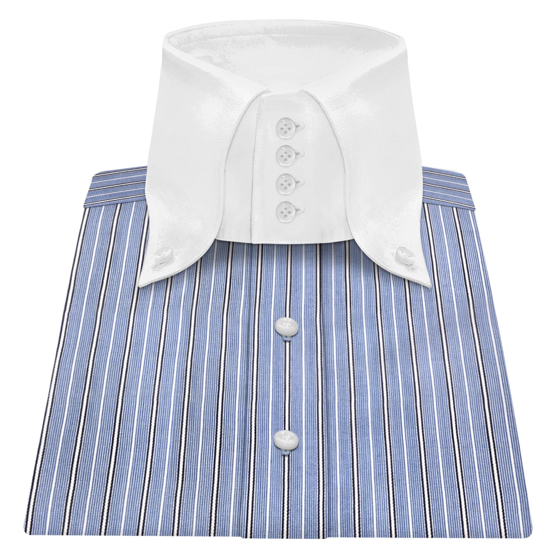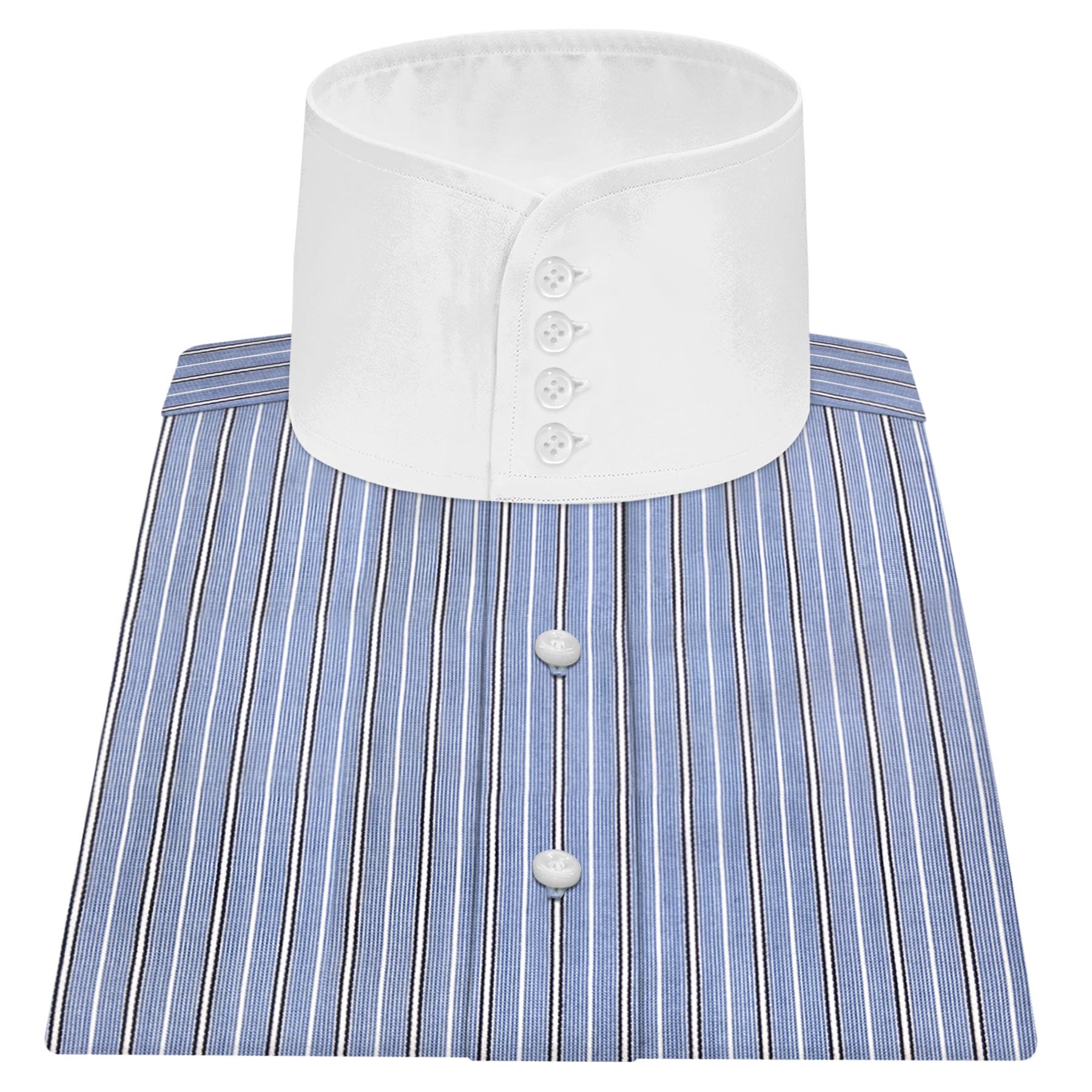White Linen Blue Stripes High Long Point 4 Button Collar