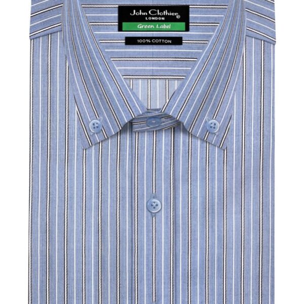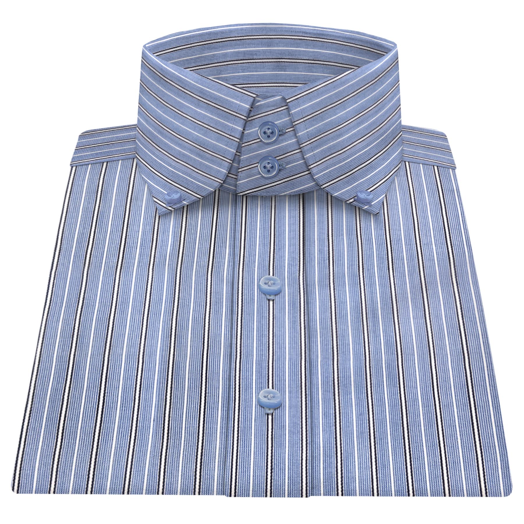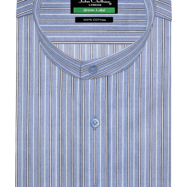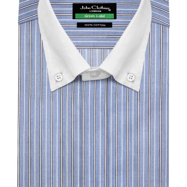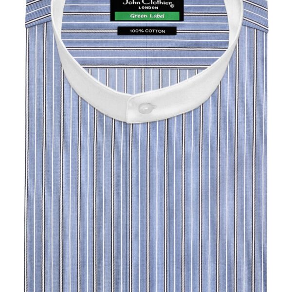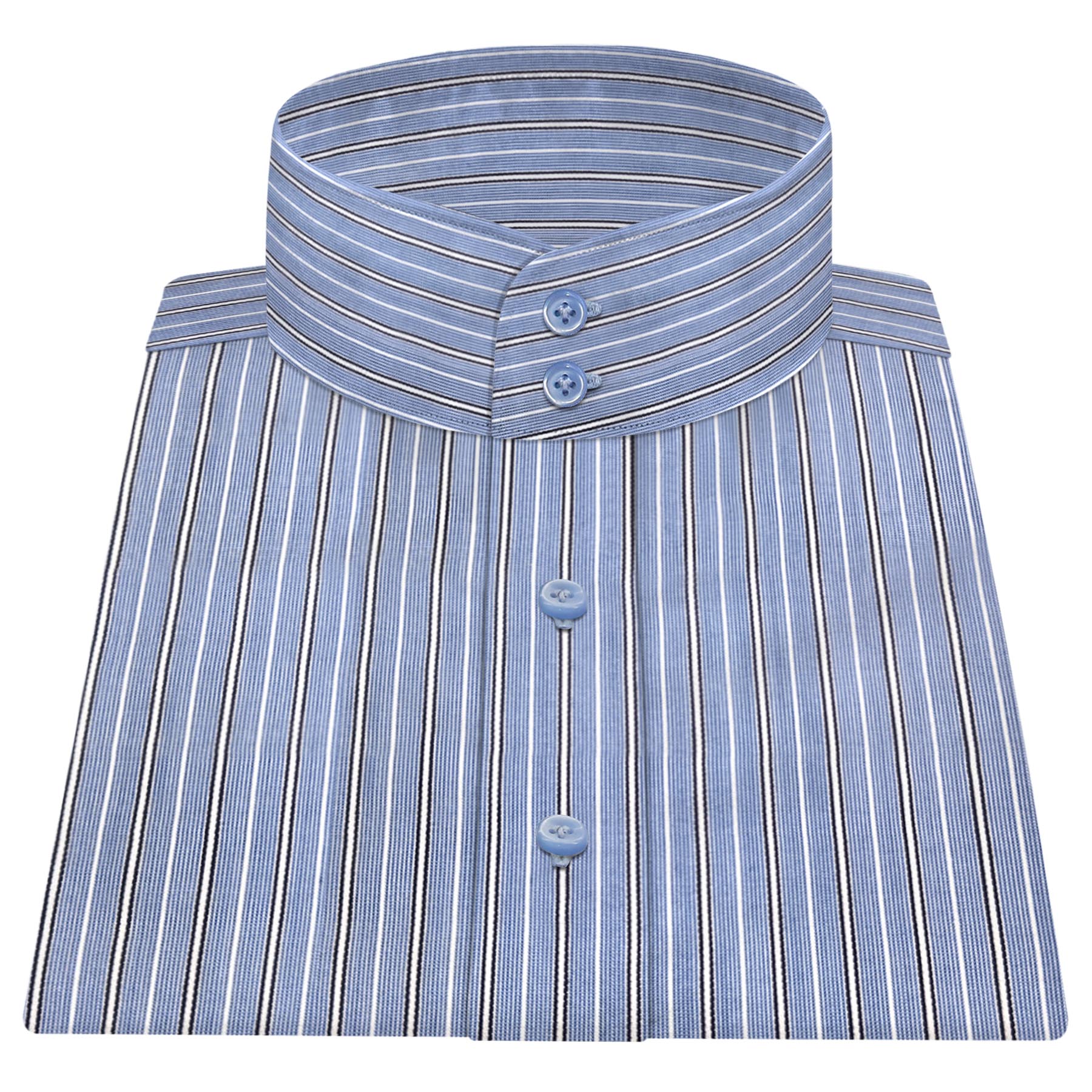 White Linen Blue Stripes High Long Point 4 Button Collar