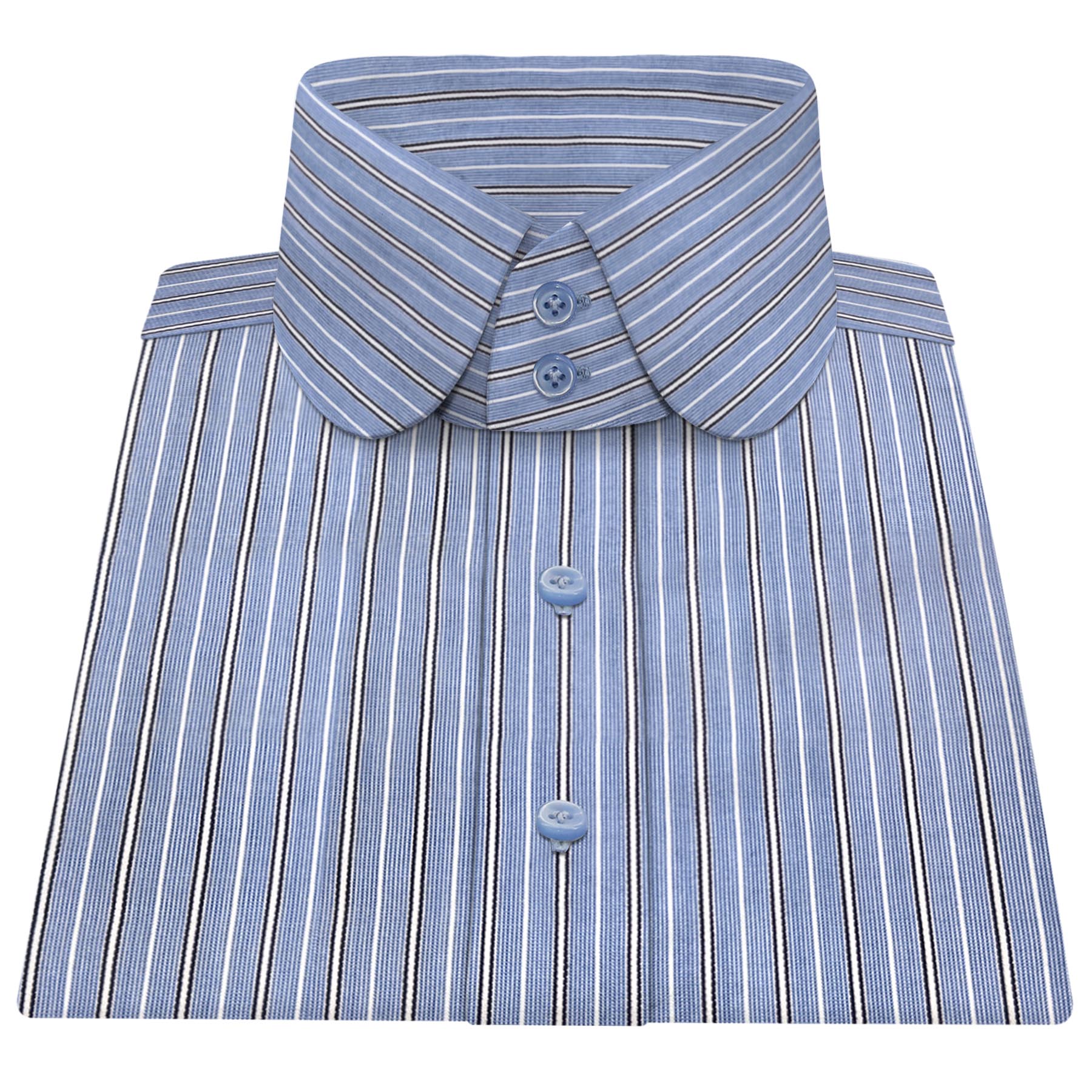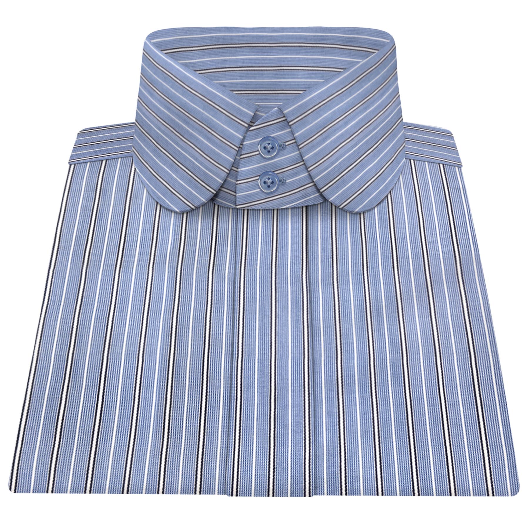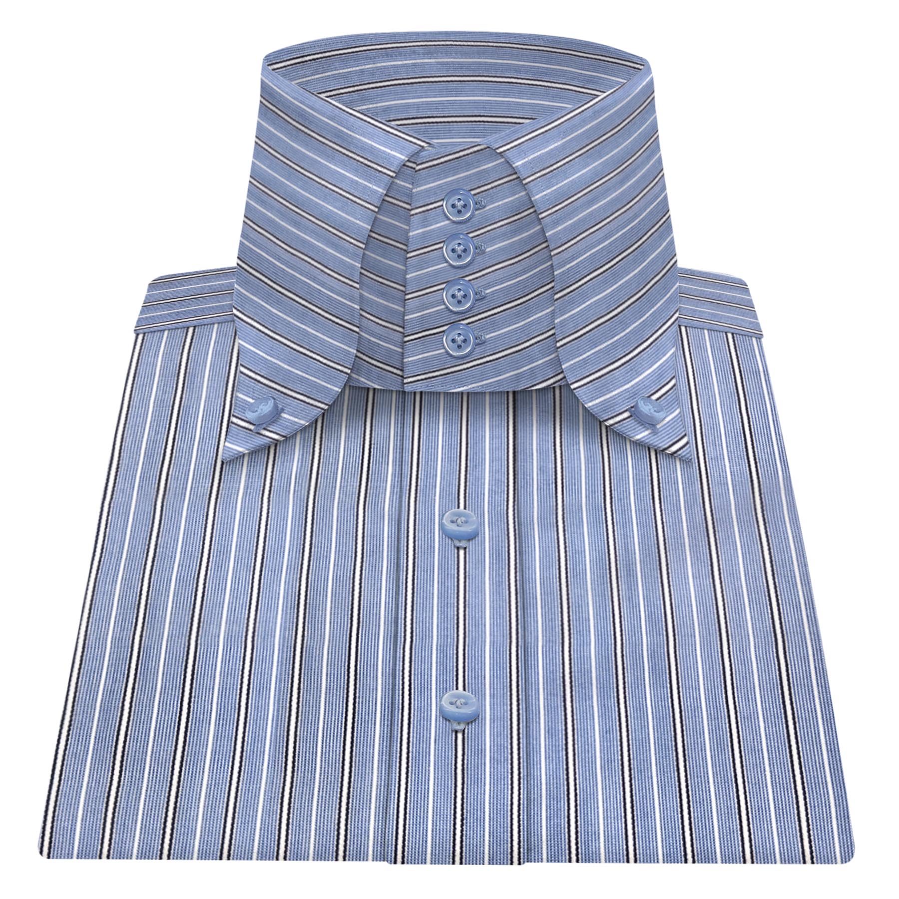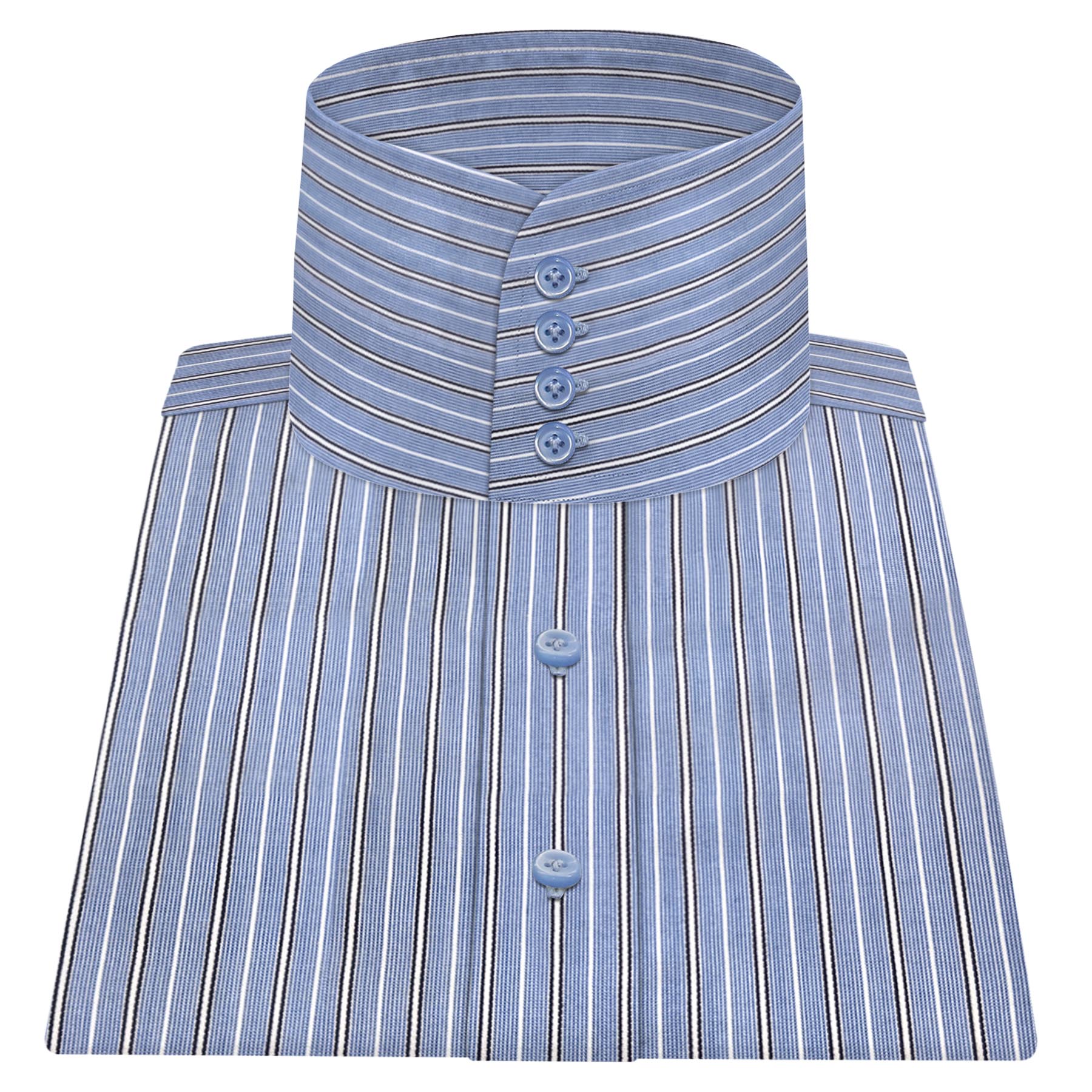 Blue Grey Pinstripes High Long Point 6 Button Collar