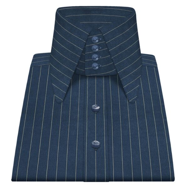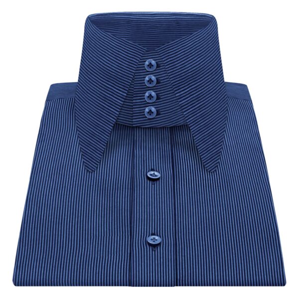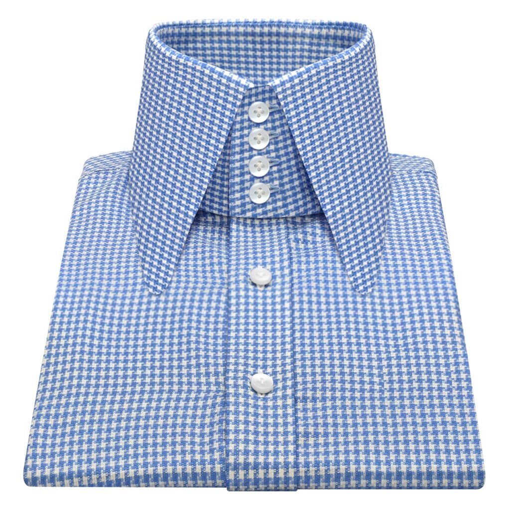 Blue Houndstooth (Large) High Long Round Tip 4 Button Collar