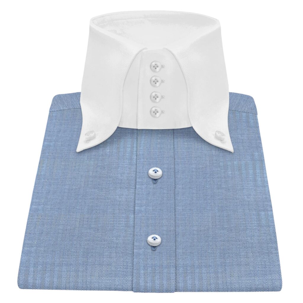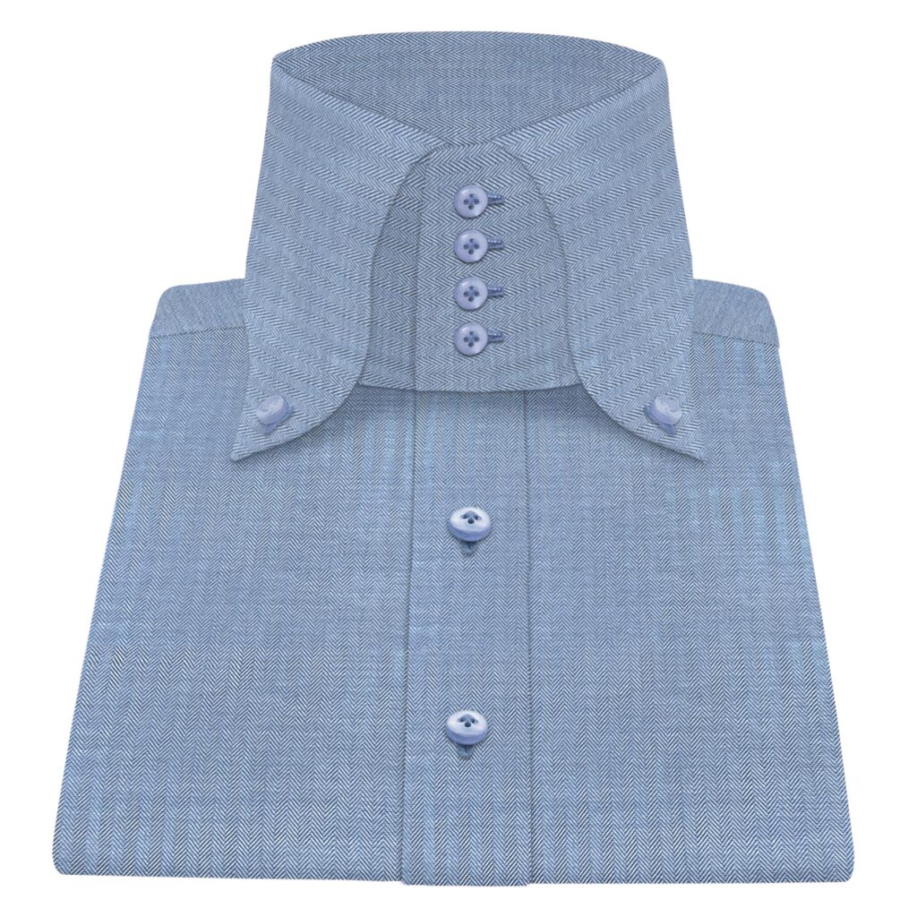 Blue Tiny Herringbone High Button Down 4 Button Collar