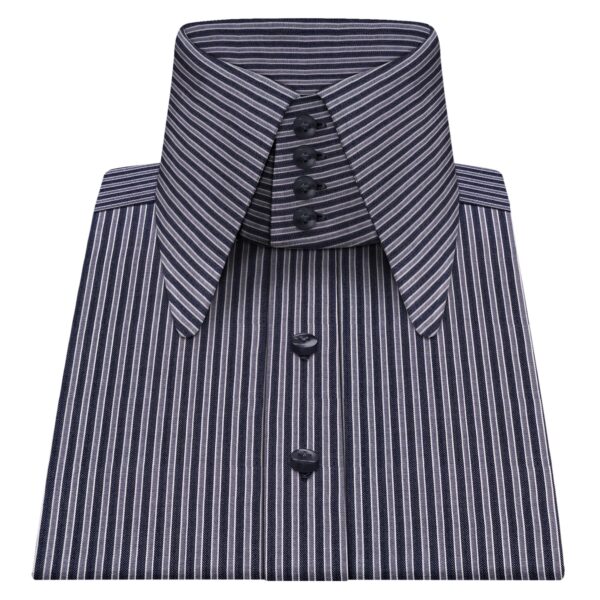Blue Tiny Herringbone High Long Round Tip 2 Button Collar