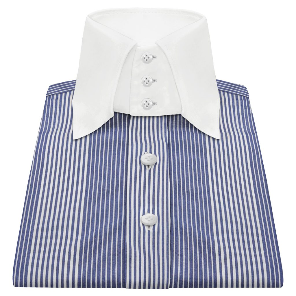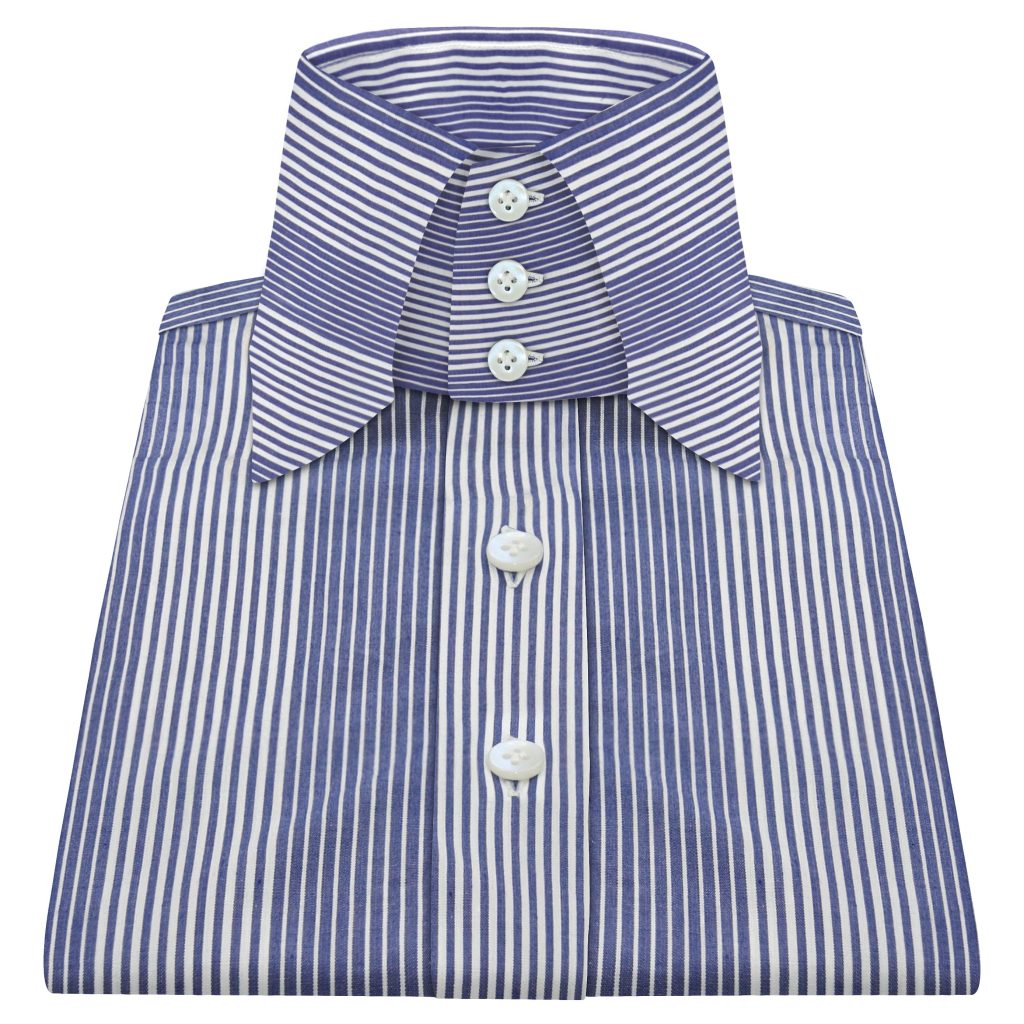 Blue Wide & Pinstripes High Button Down 4 Button Collar
