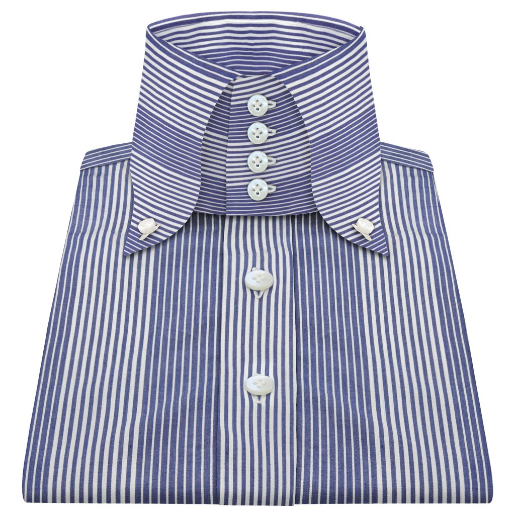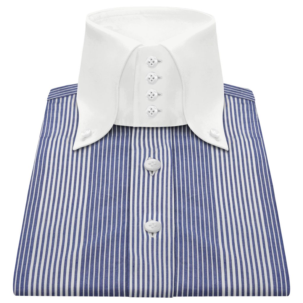 Blue Wide & Pinstripes High Button Down 2 Button Collar