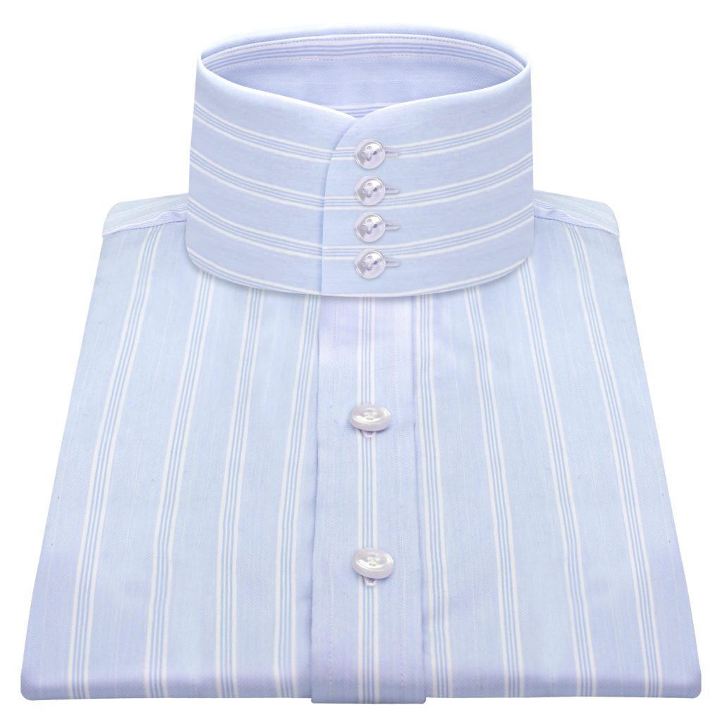 Blue White Mix Stripes High Band 4 Button Collar