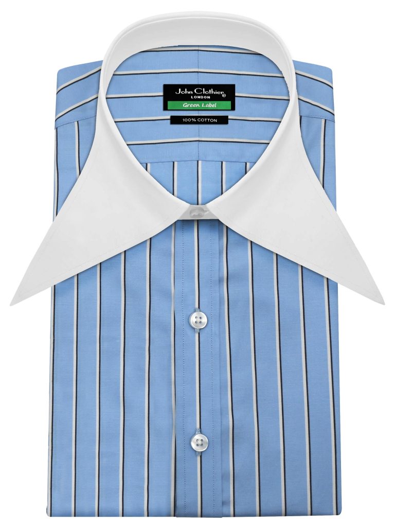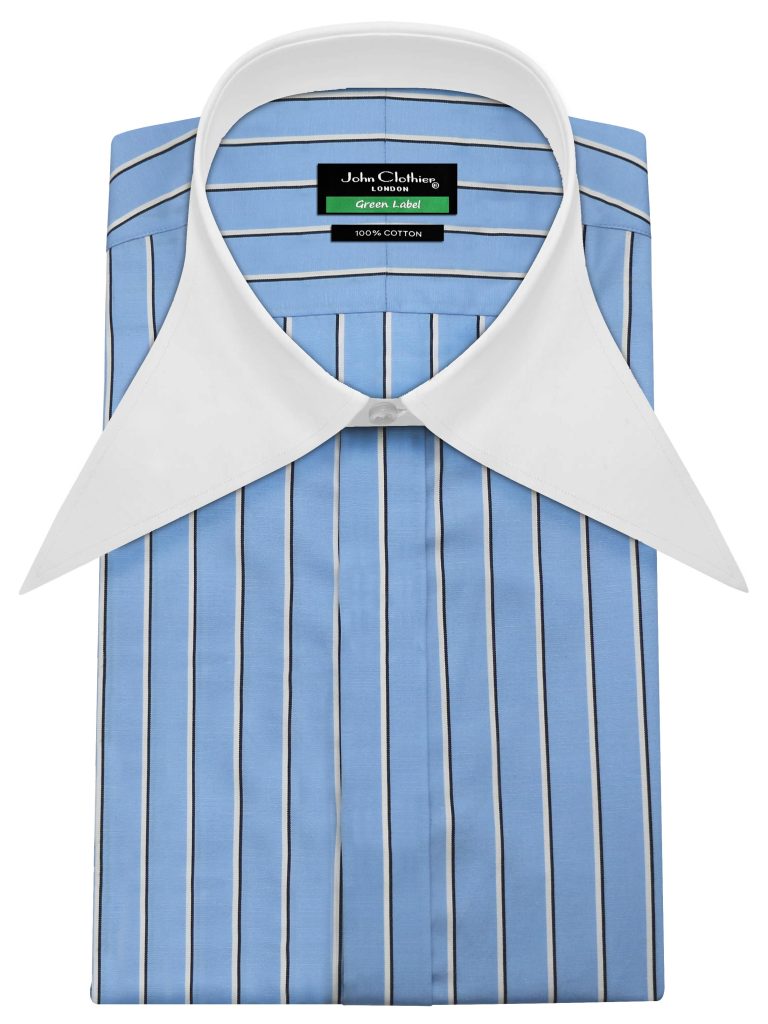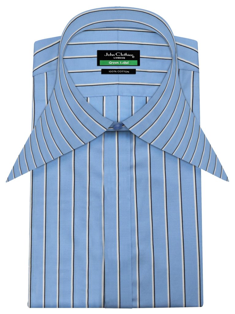 Black & White Stripes on Blue High Button Down 4 Button Collar