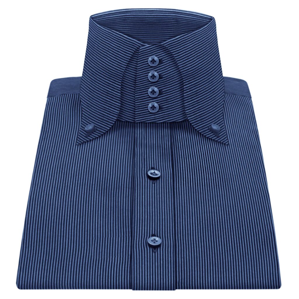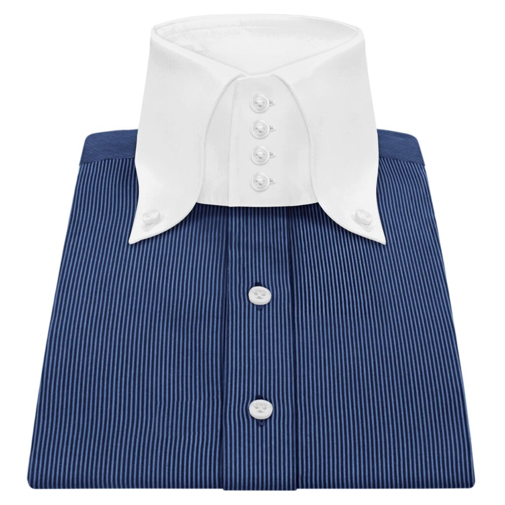 Black & Grey Pinstripes High Button Down 4 Button Collar