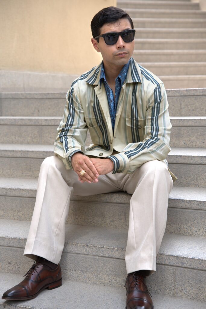 Beige Wide & Pinstripes High Penny 3 Button Collar