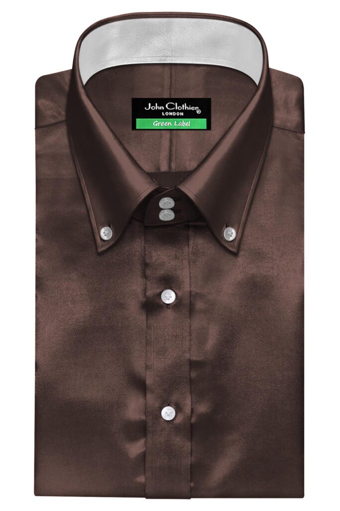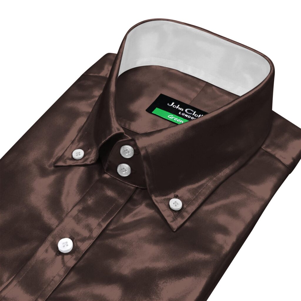 Ink Blue Silky Satin Contrast High Button Down 2 Button Collar