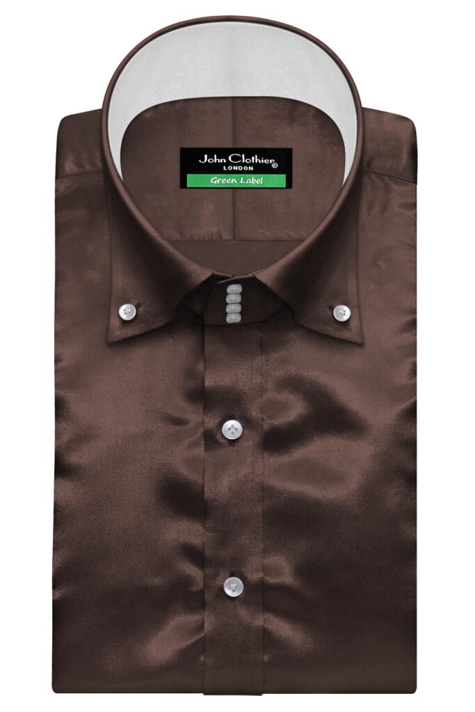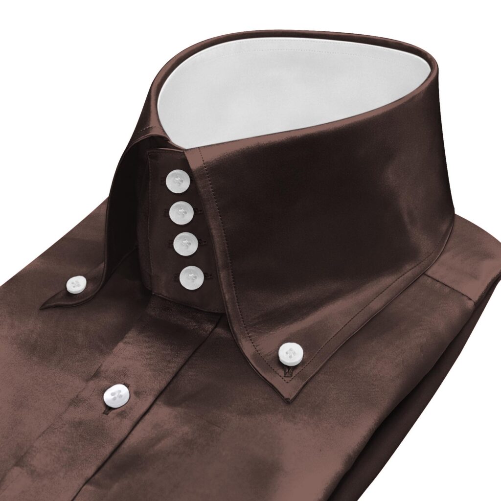 Ink Blue Silky Satin Contrast High Button Down 4 Button Collar
