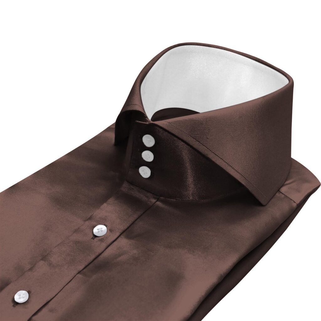 Ink Blue Silky Satin Contrast High Cutaway 3 Button Collar