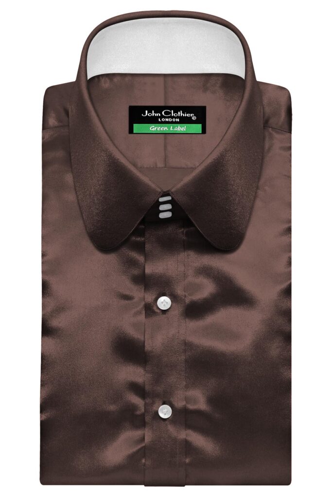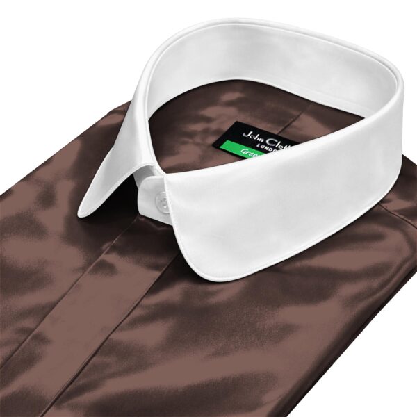 Coffee Brown Silky Satin Contrast High Penny 3 Button Collar