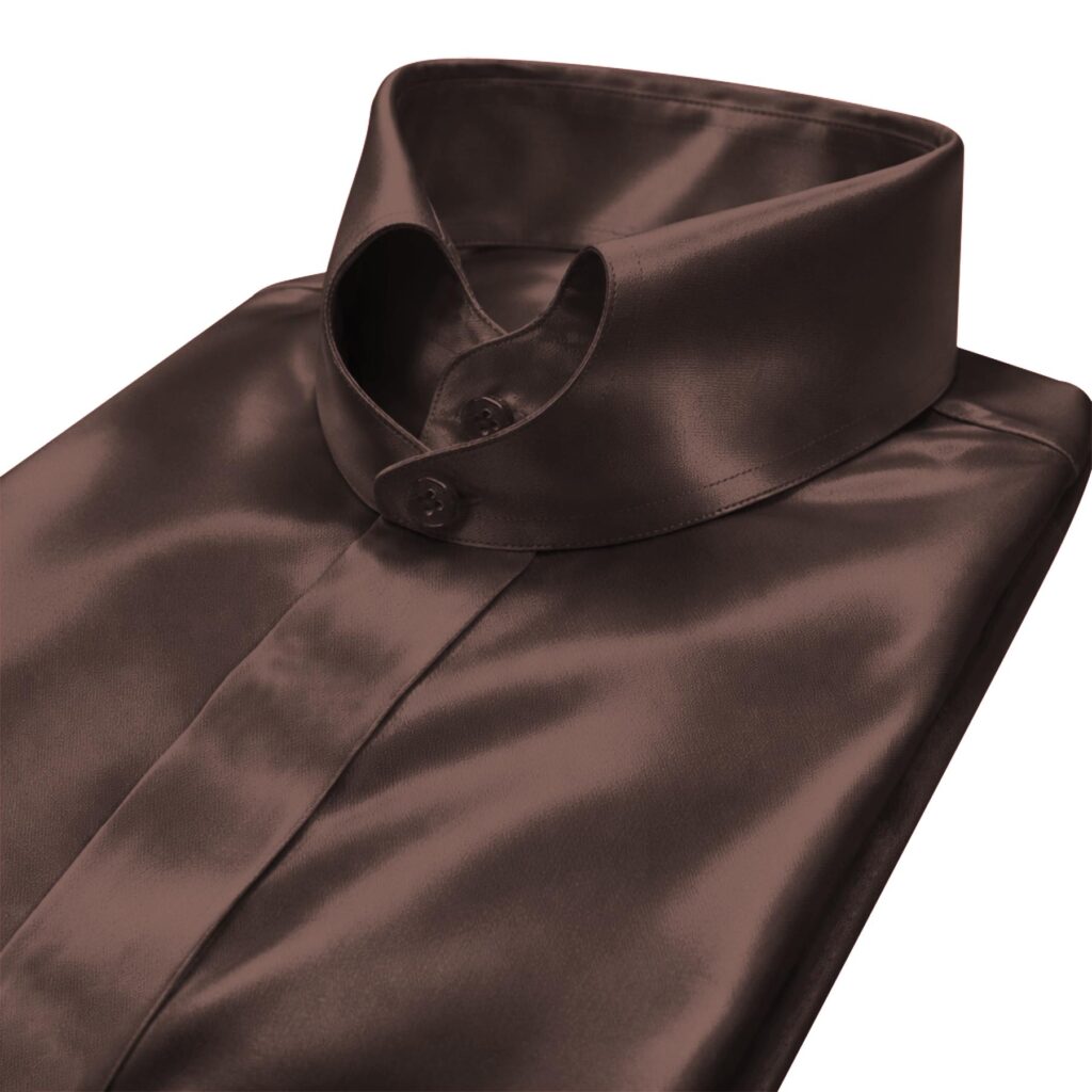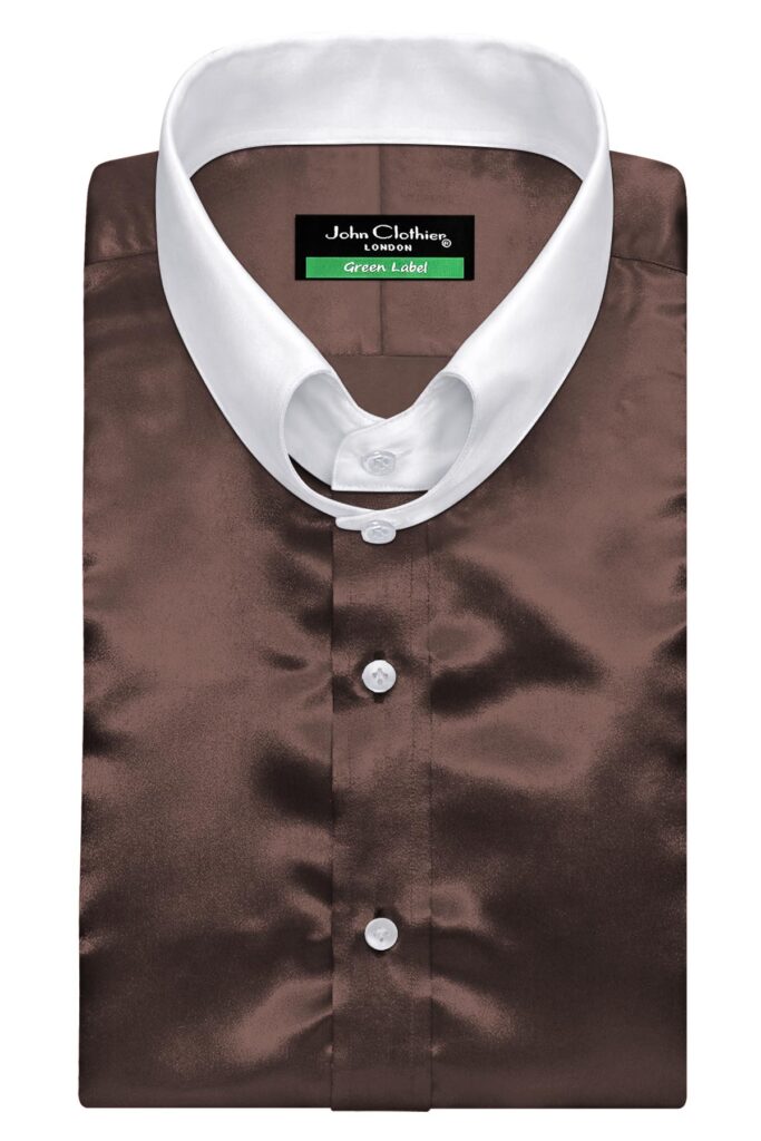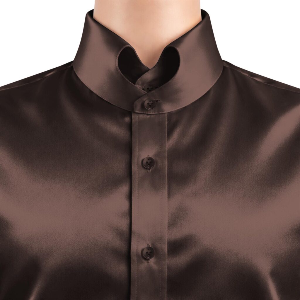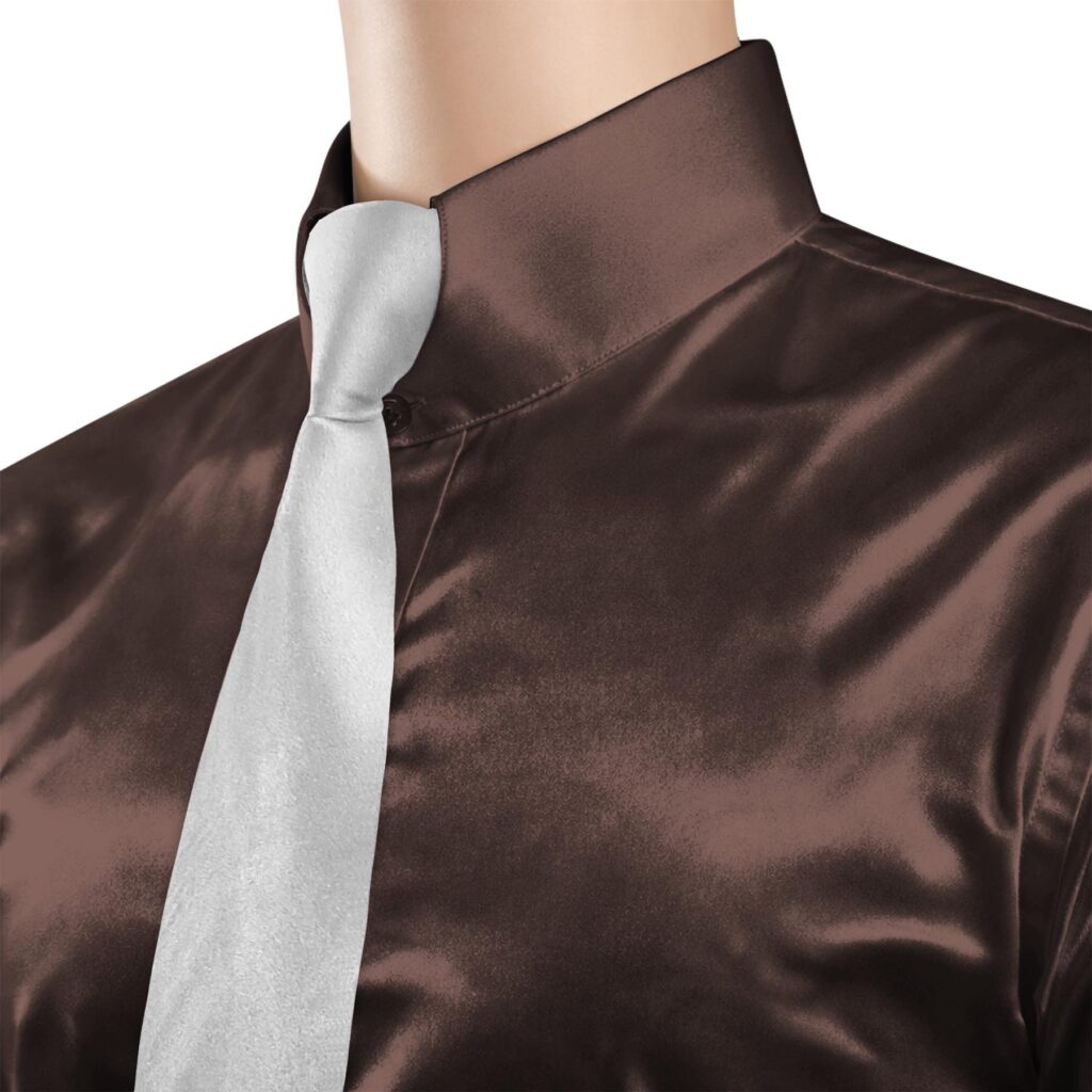 Coffee Brown Silky Satin Heart Shape Tab Collar