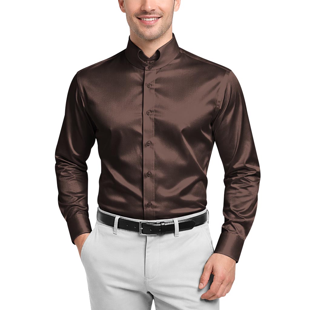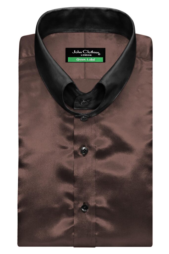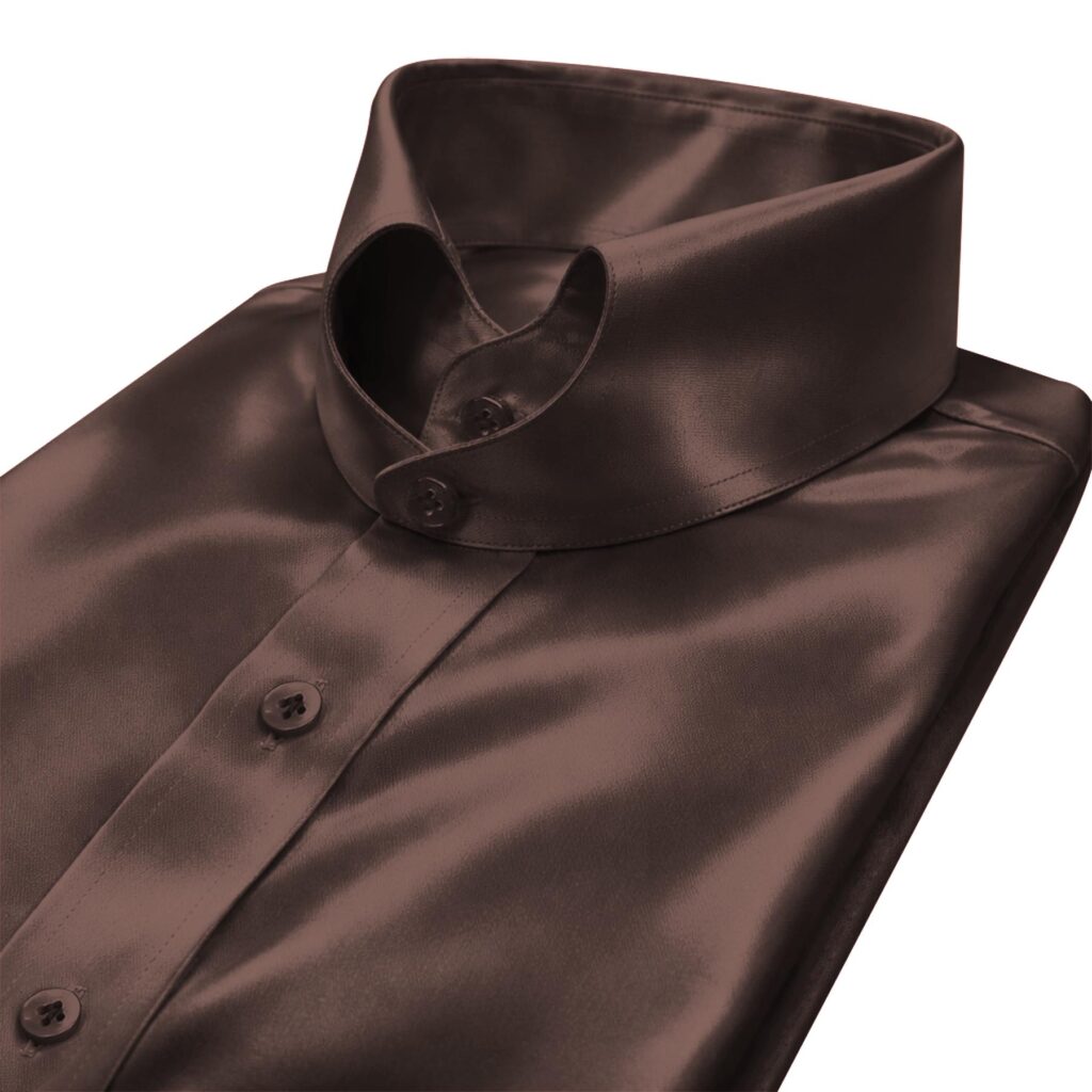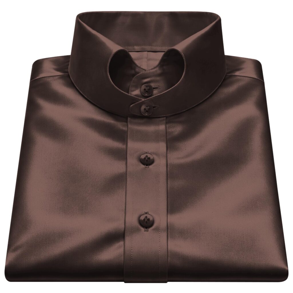Coffee Brown Silky Satin Heart Shape Tab Collar