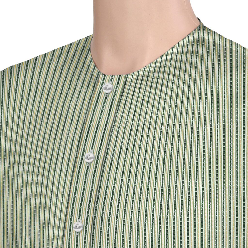 Collarless Dark Maroon Chain Stitch Stripes Shirt