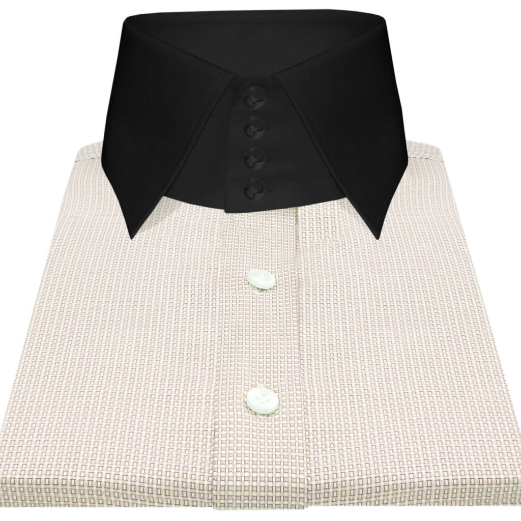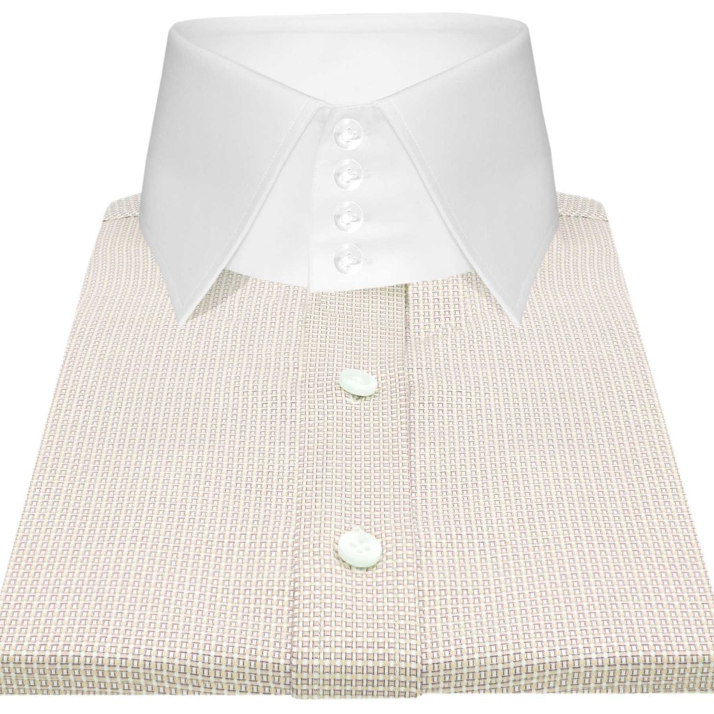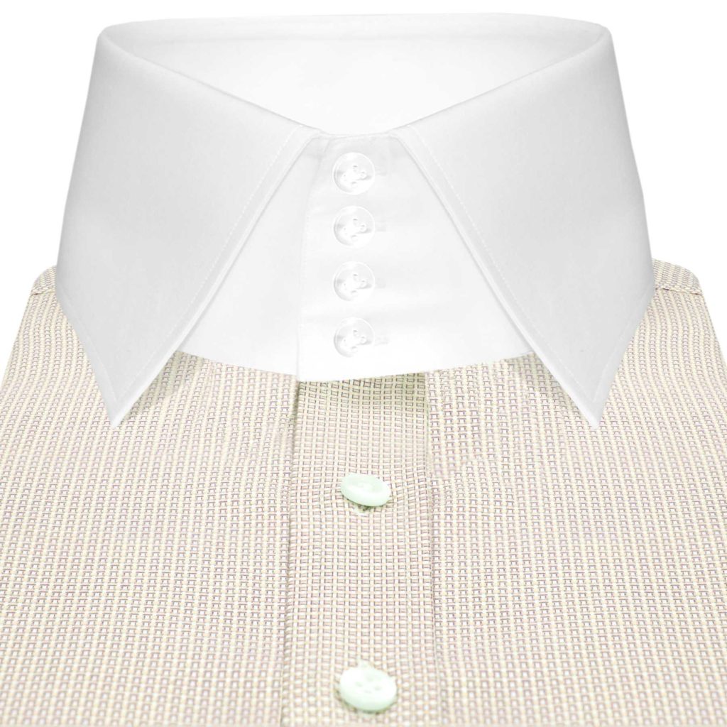 Cream Pin Checks High Spread 4 Button Collar