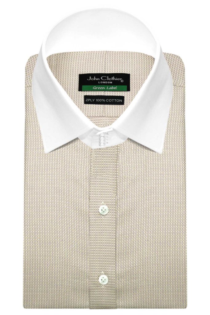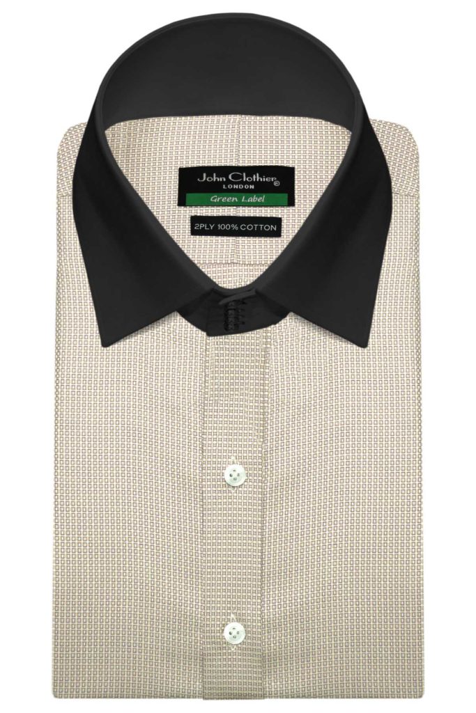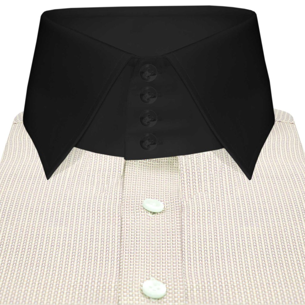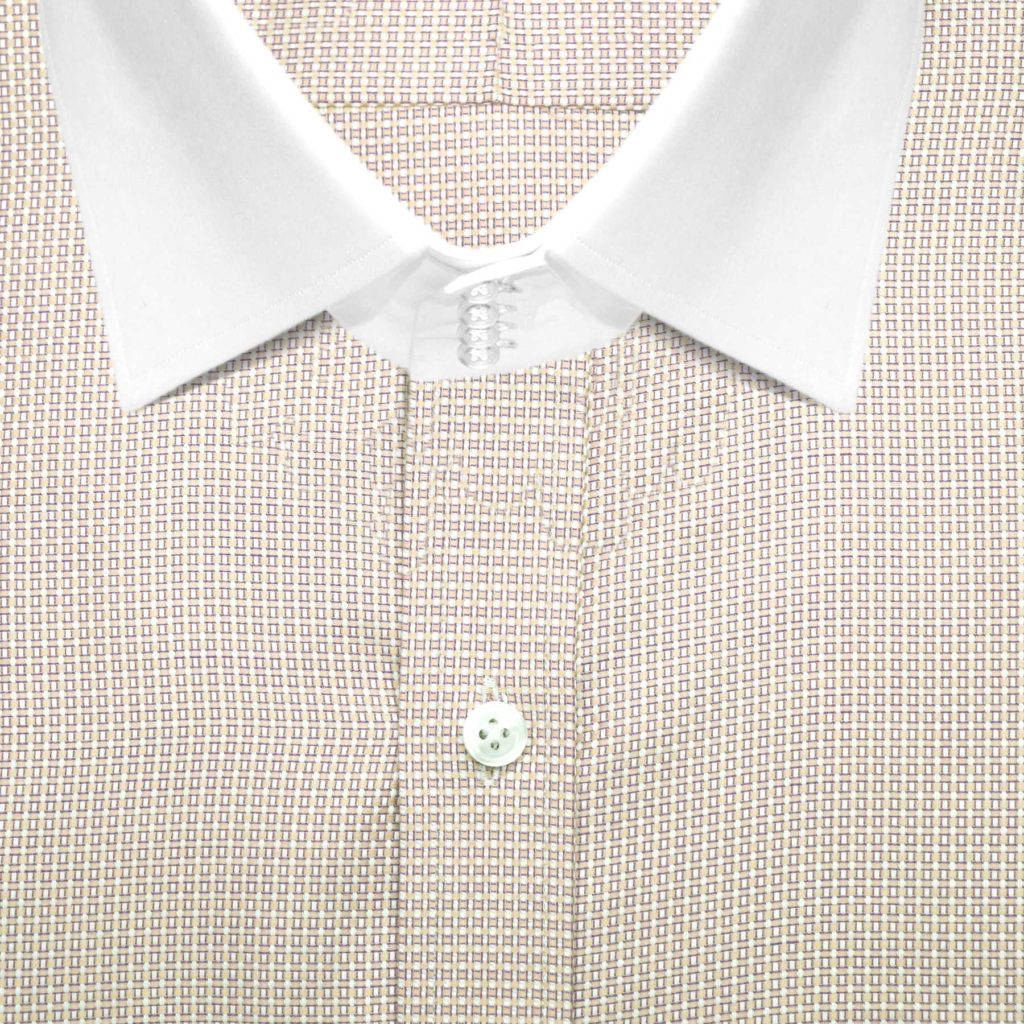 Cream Pin Checks High Spread 4 Button Collar
