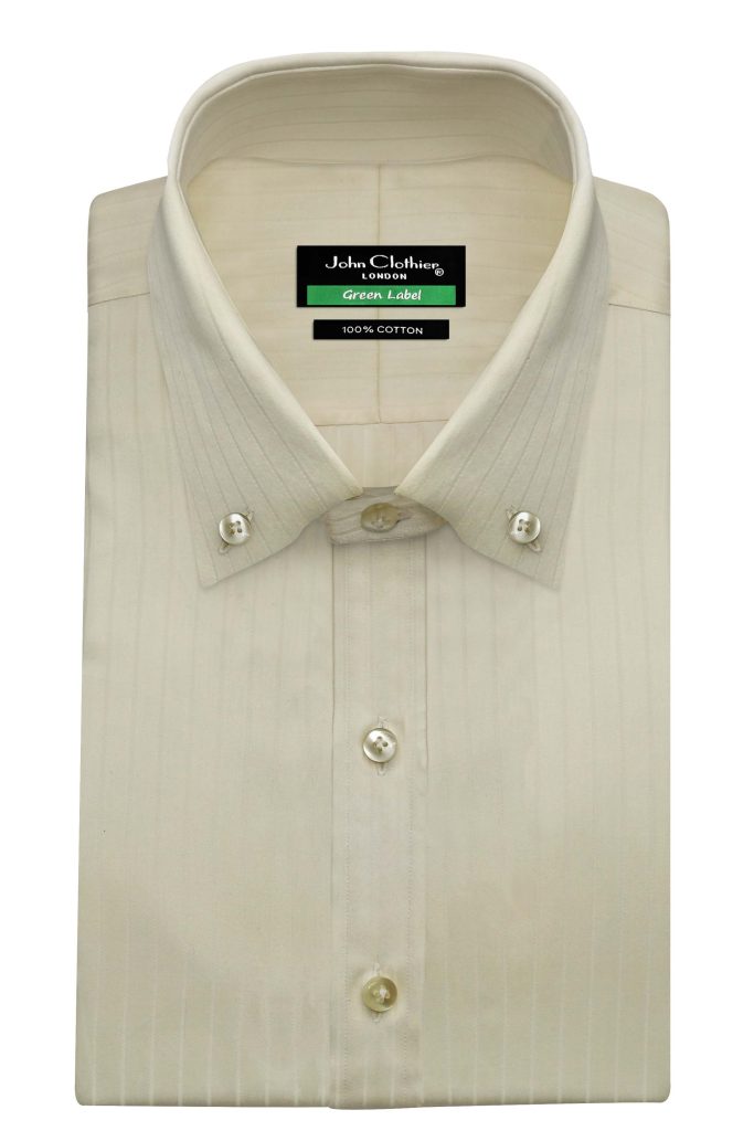 Cream Self Stripes Button Down Collar Size 17.5