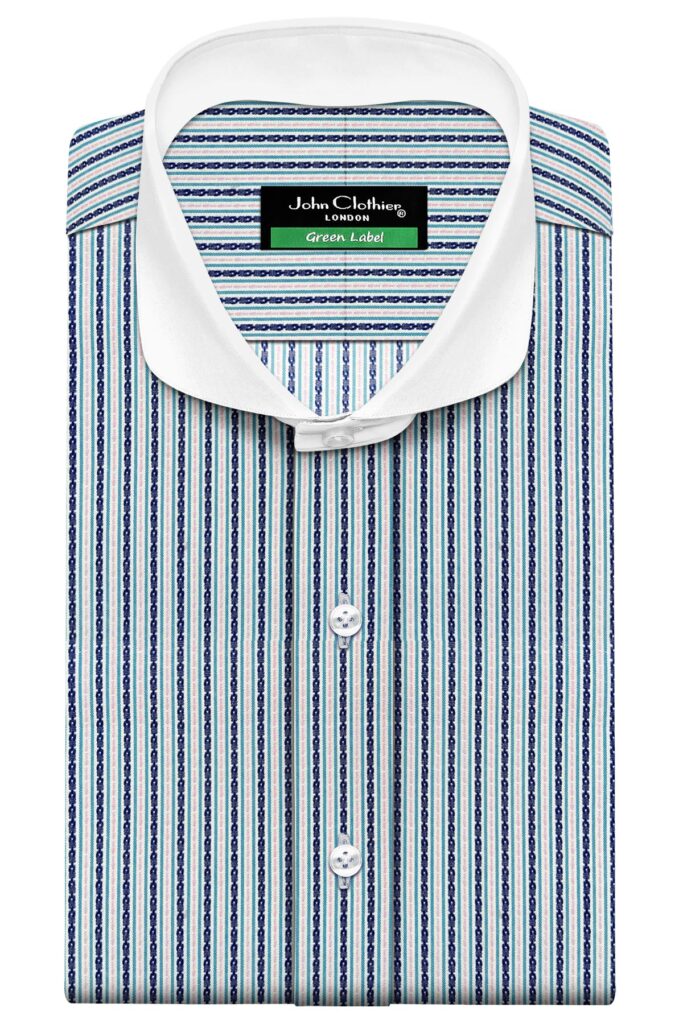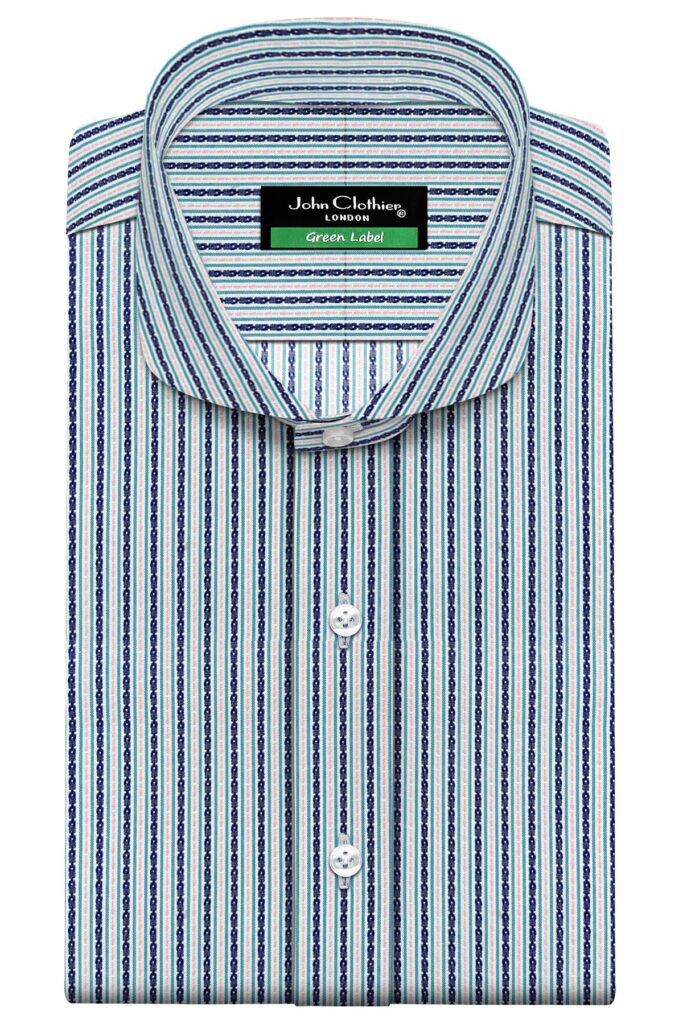 Dark Green Chain Stitch Stripes Cutaway Penny Collar