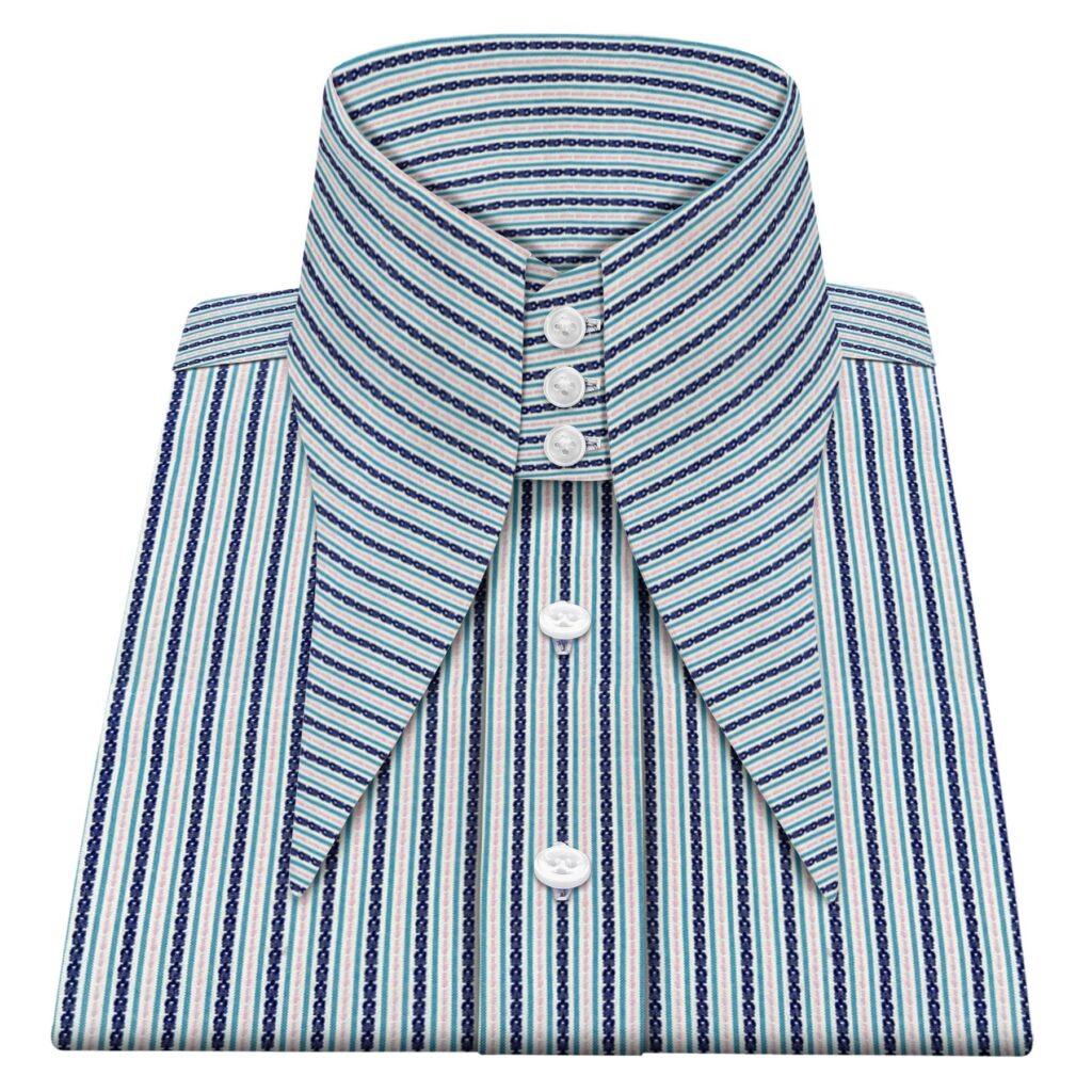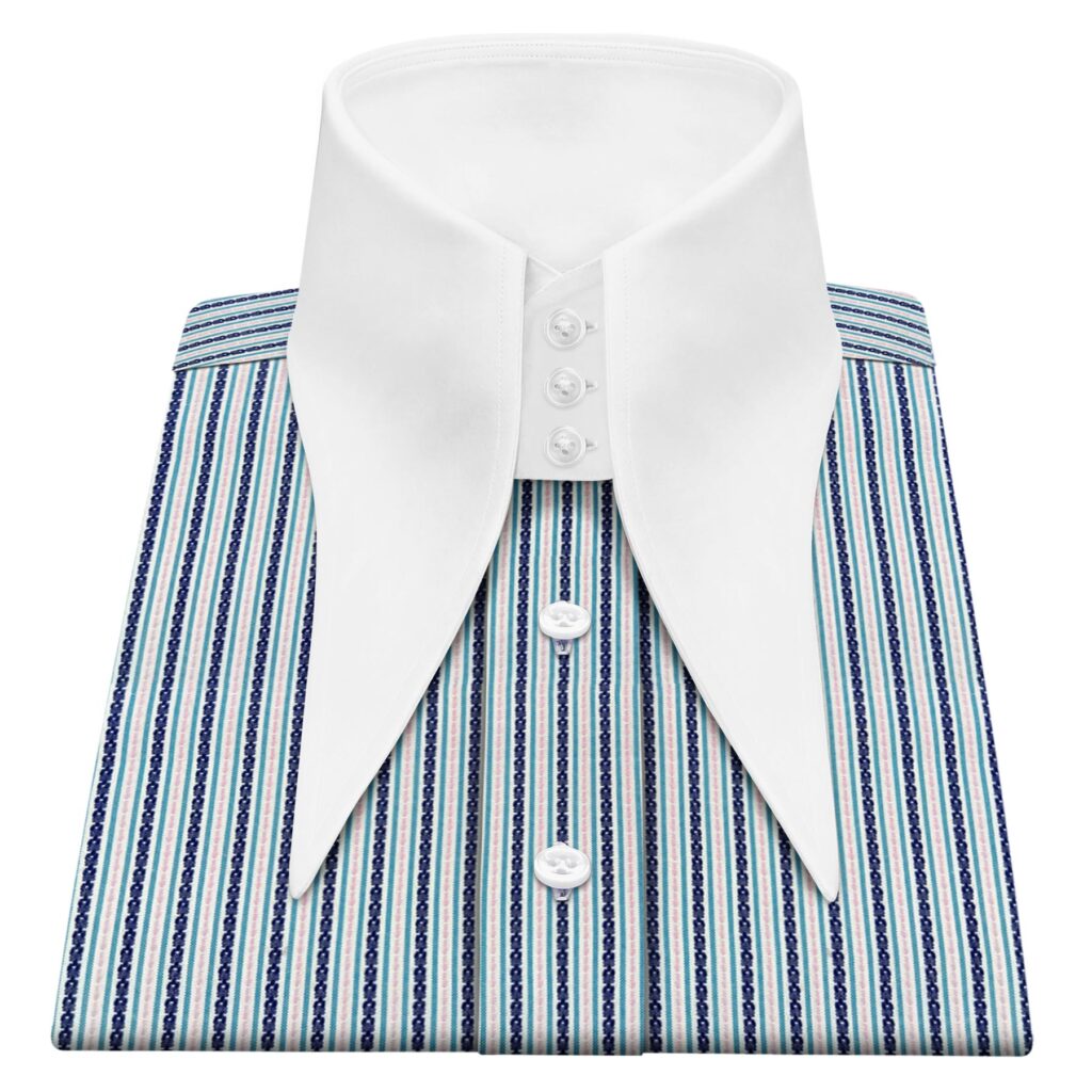 Dark Green Chain Stitch Stripes High Extreme Longpoint Collar