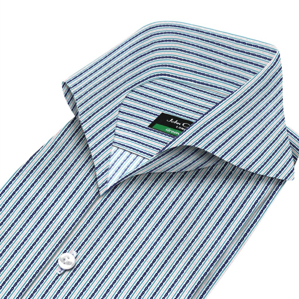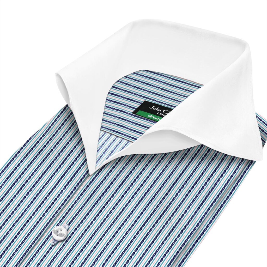 Dark Green Chain Stitch Stripes High Open Cutaway Collar