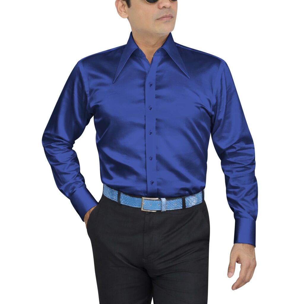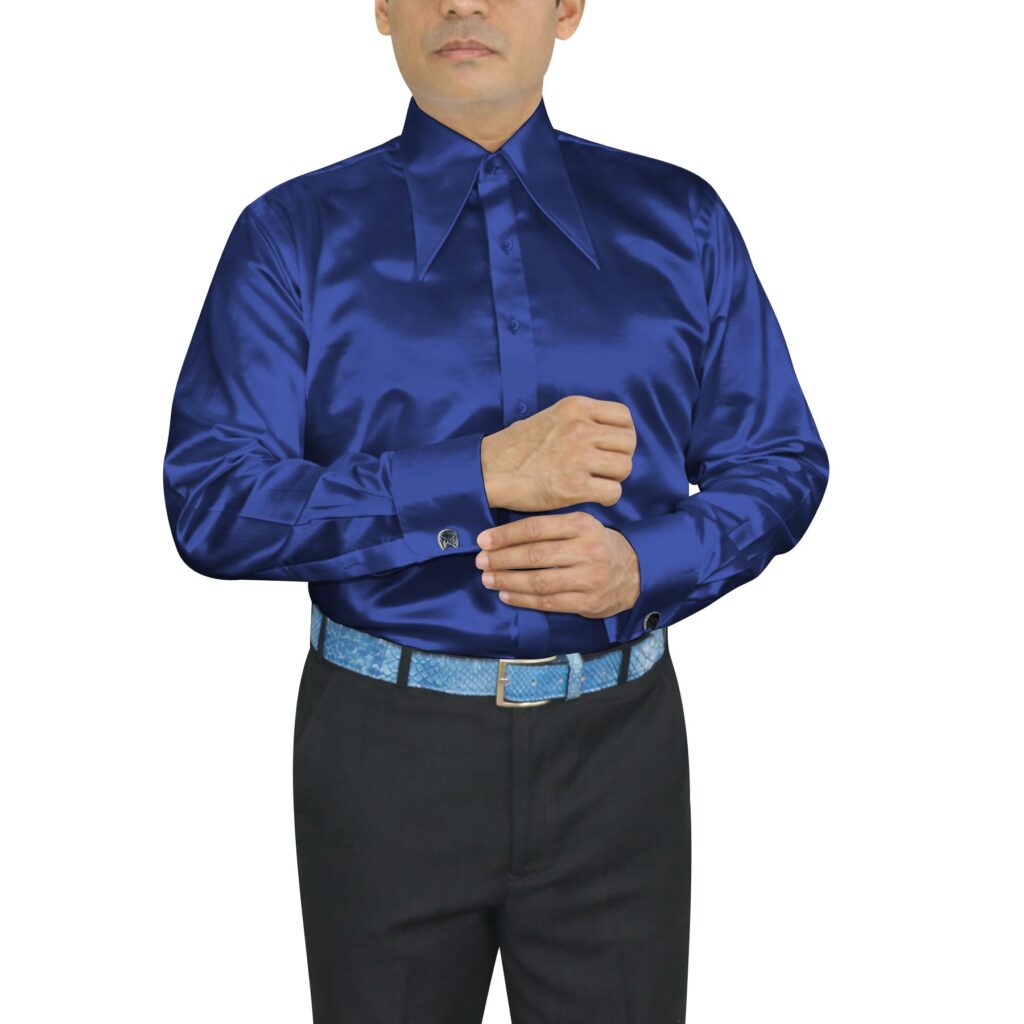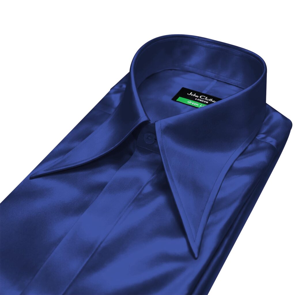 Dark Blue Silky Satin Extra Long Spread Collar