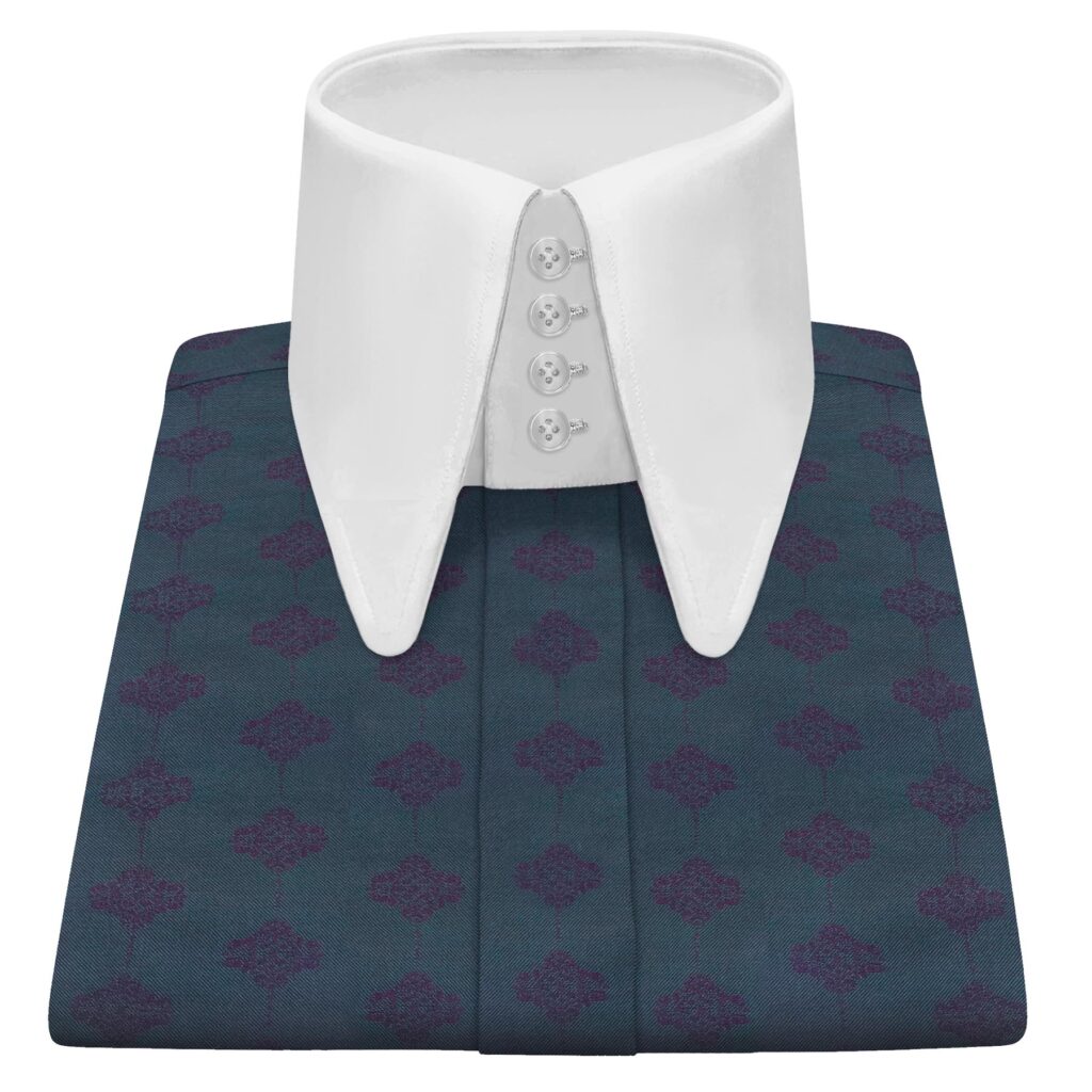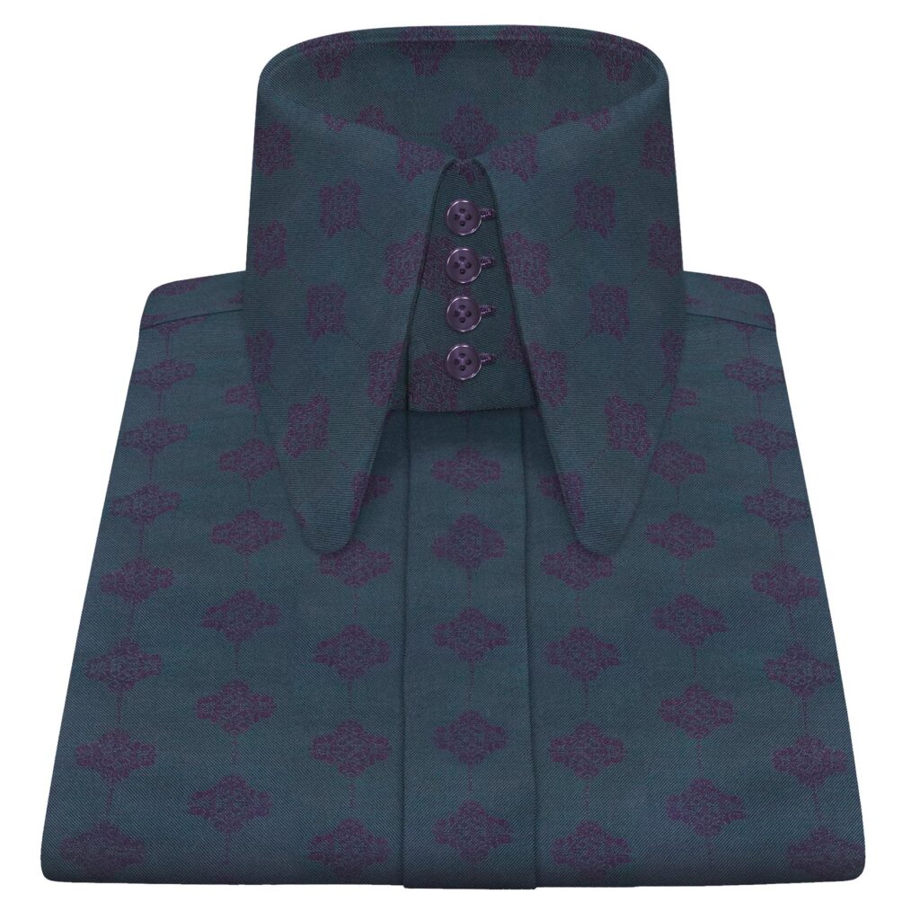 Dark Green with Purple Jacquard High Long Round Tip 4 Button Collar