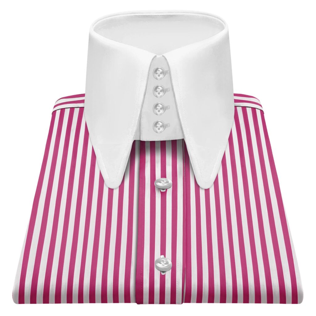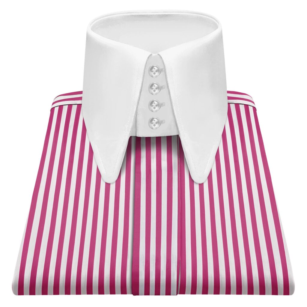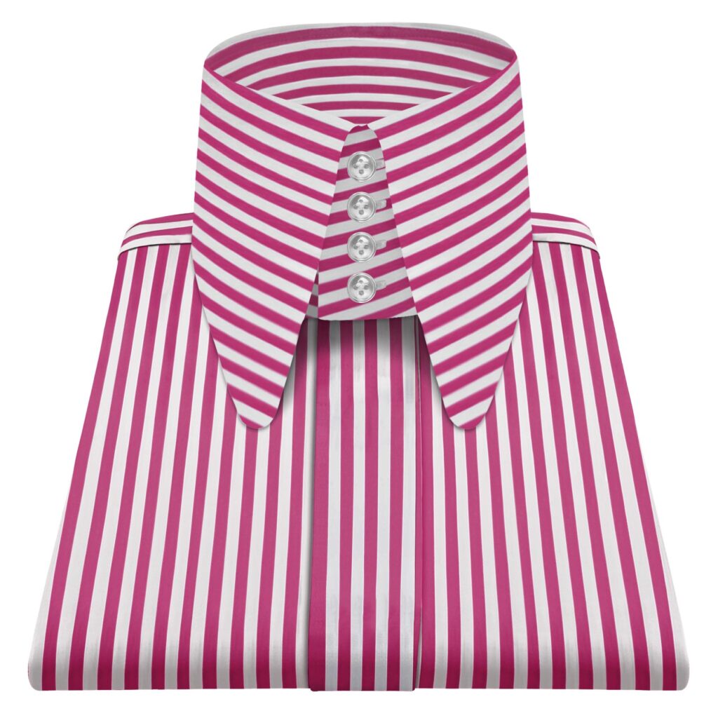 Deep Pink Bengal Stripes High Long Round Tip 2 Button Collar
