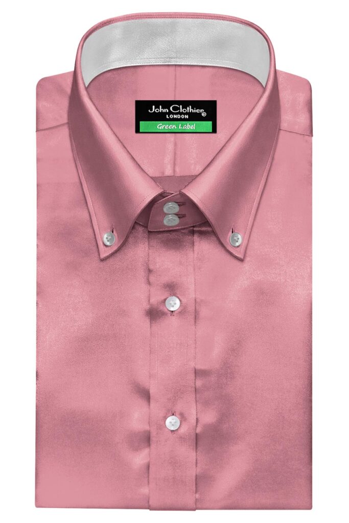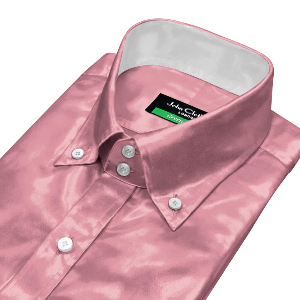 Ink Blue Silky Satin Contrast High Button Down 2 Button Collar