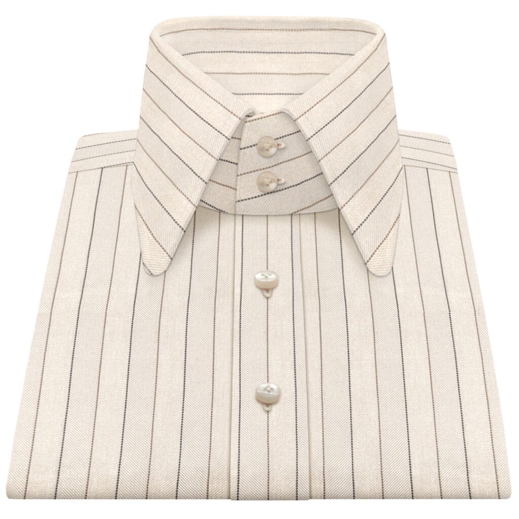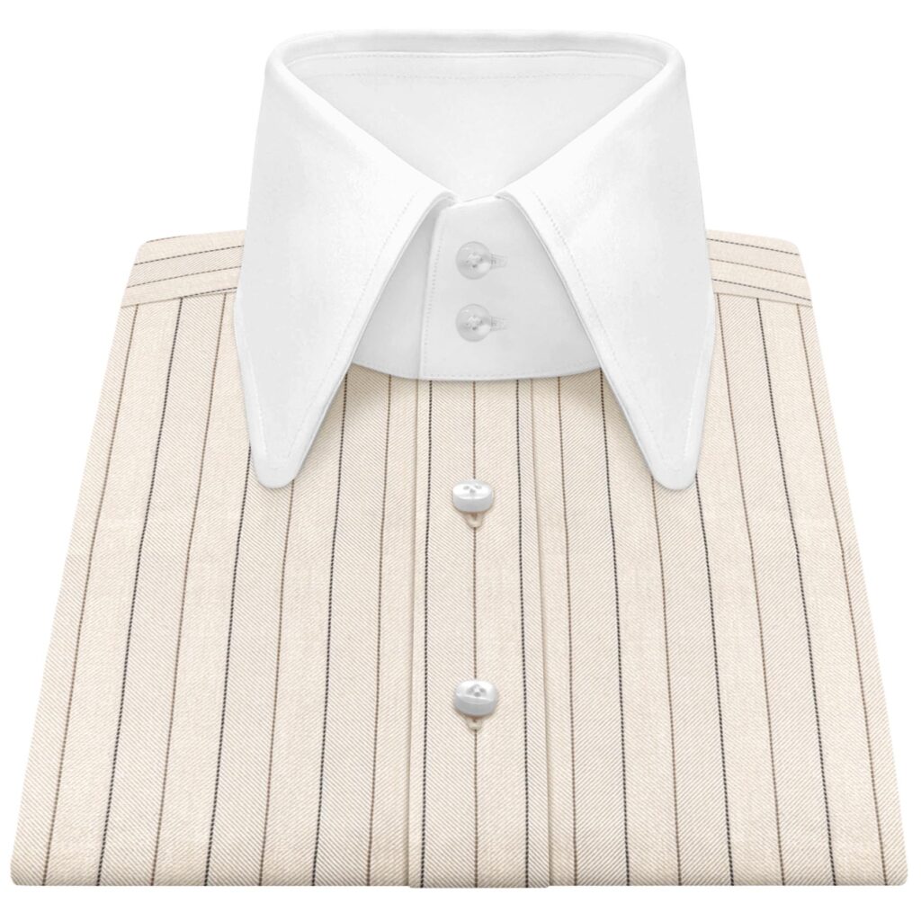 Fawn Chalk Stripes High Long Round Tip 2 Button Collar