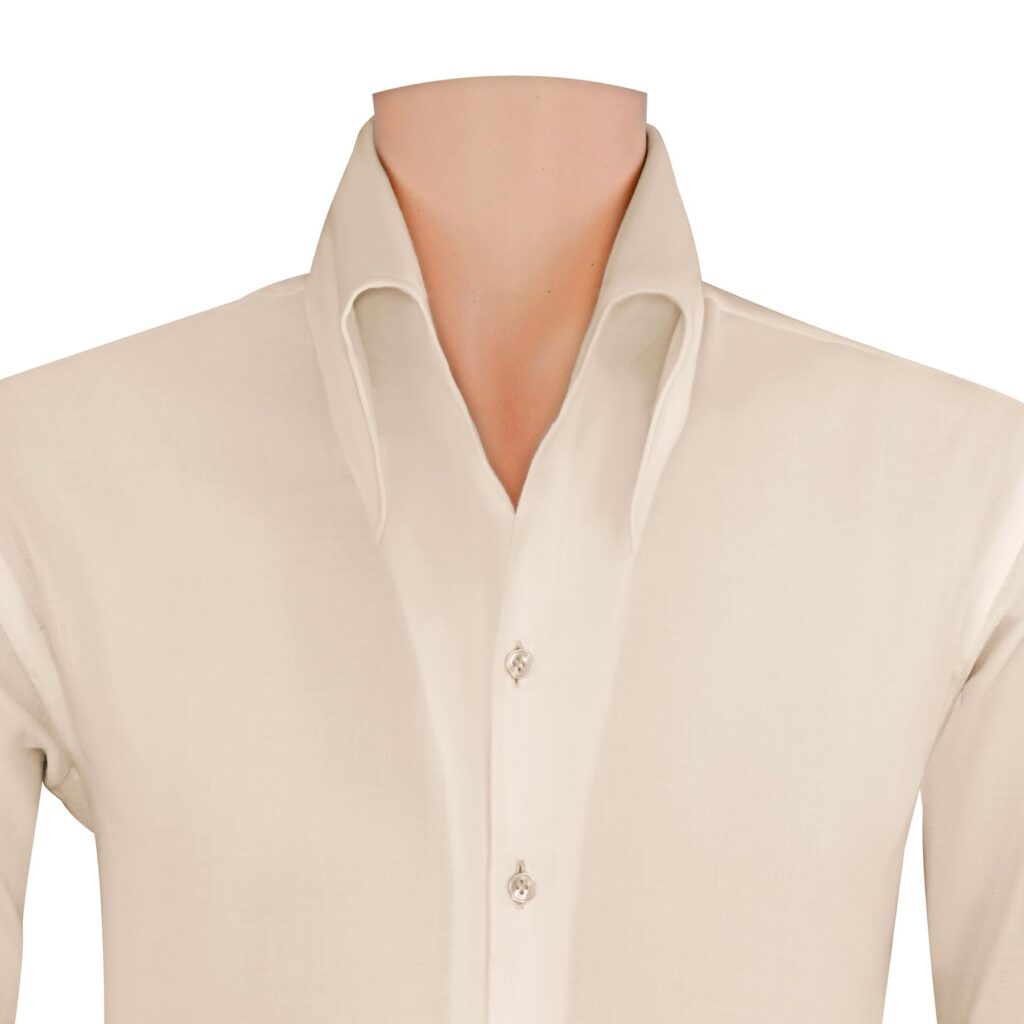 Collar style : High open button-down collar